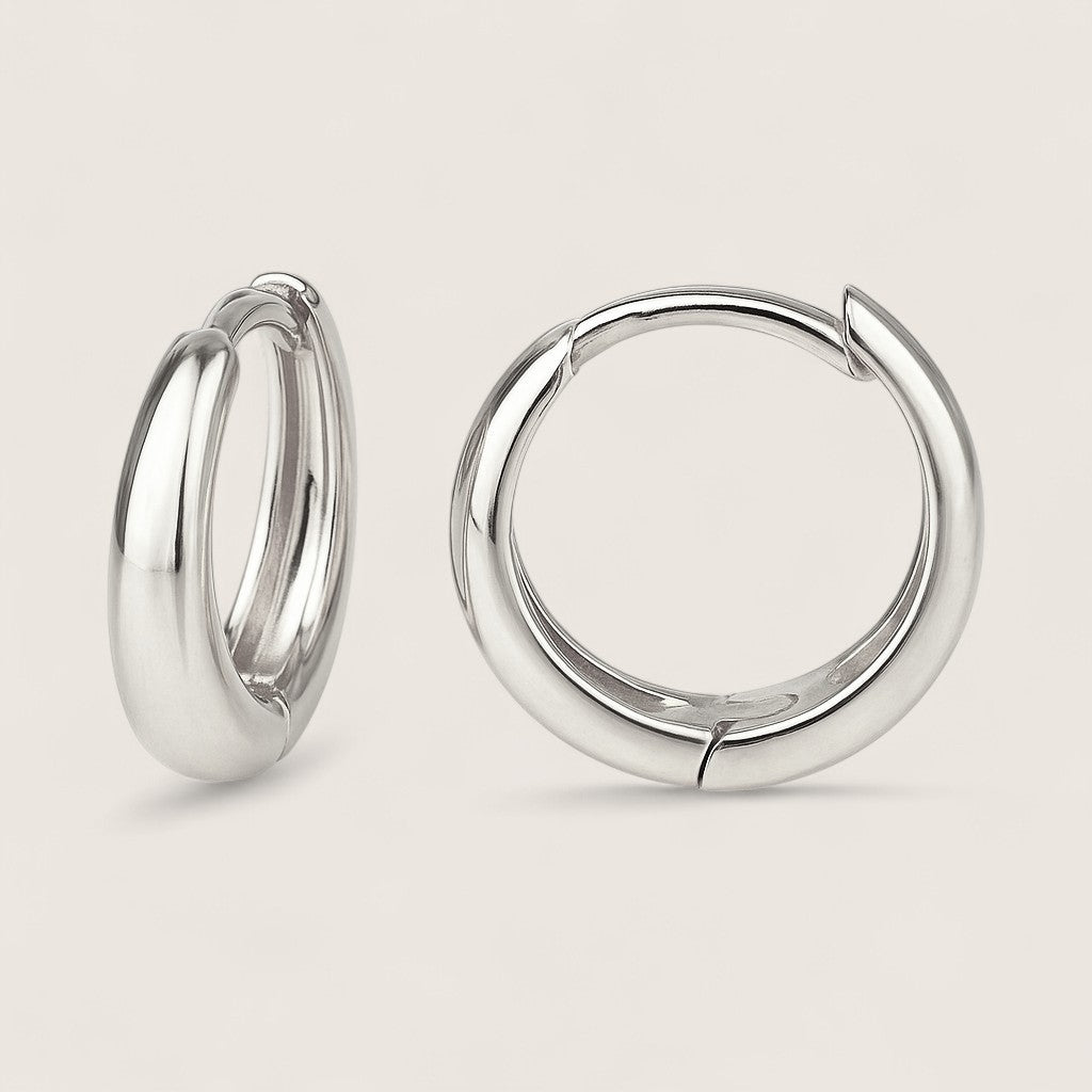 Minimalist in size, bold in finish. These 10mm mini hoop earrings are crafted from sterling silver with a rhodium-plated or gold finish for lasting shine and durability. The 2mm thickness adds just enough edge, making them perfect for everyday wear or stacked looks. Lightweight and secure with a hinged snap closure, they offer effortless style with a polished punch.