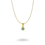 Our evil eye pendant is solid 10 karat gold and is paired on a 18" 14KT gold filled chain.