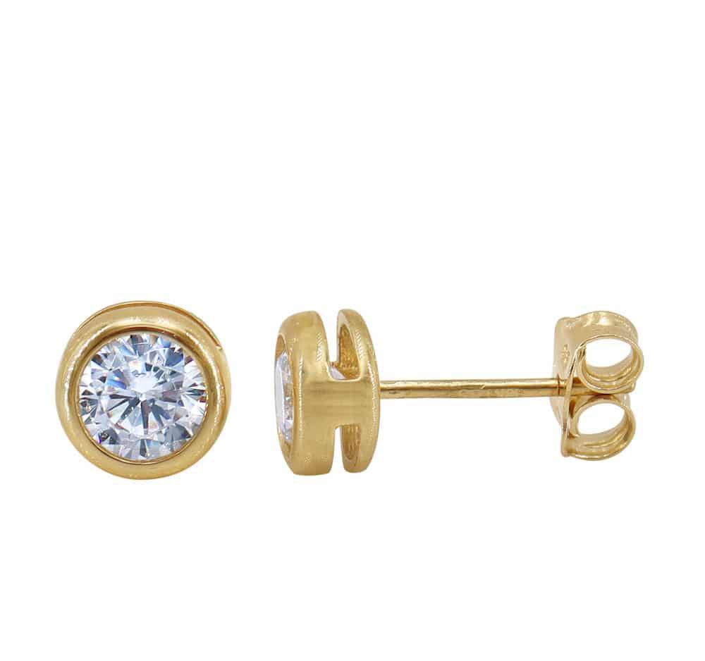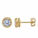 Beautiful and classic bezel set 'AAA' quality CZ replica diamond encased in 10KT gold stud earrings.