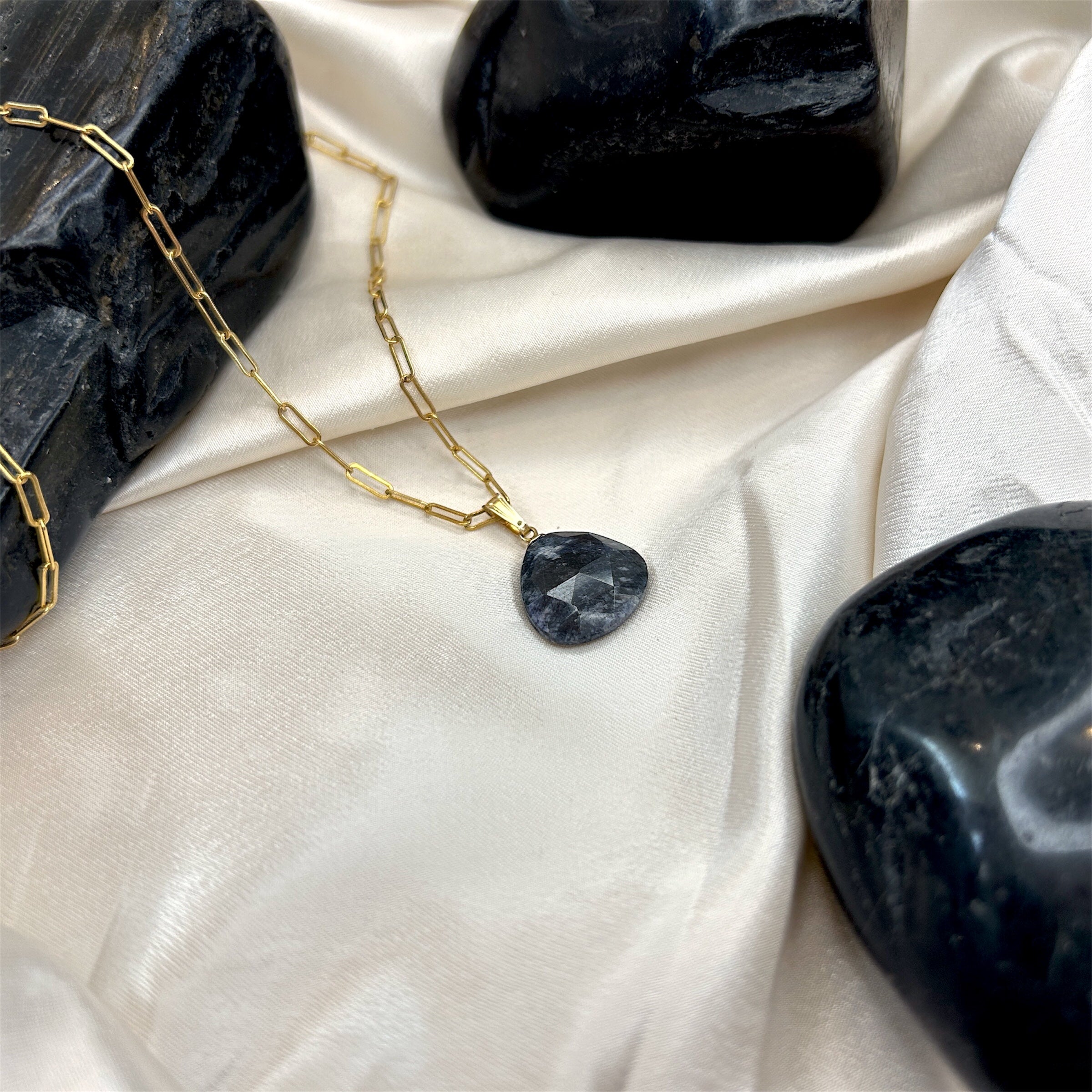 Enjoy this simple yet elegant gemstone necklace paired on a 2mm 14k gold filled paper clip chain. These gemstones represent: