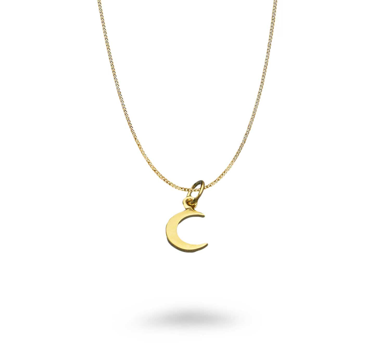 Capture the mystique of the night sky with our 40-micron gold-plated sterling silver small crescent moon pendant, measuring 14mm in height and 7mm in width. This exquisite pendant is paired elegantly with a 14kt gold-filled 18" chain, creating a mesmerizing combination of celestial elegance. The crescent moon, a symbol of change and renewal, graces your neckline with its intricate design and subtle radiance. The substantial gold plating ensures enduring luminosity, harmonizing beautifully with the glistening gold-filled chain. Whether worn as an expression of your celestial fascination or as a thoughtful gift, this pendant and chain ensemble embodies both style and the mysteries of the cosmos, making it a cherished addition to your jewelry collection.