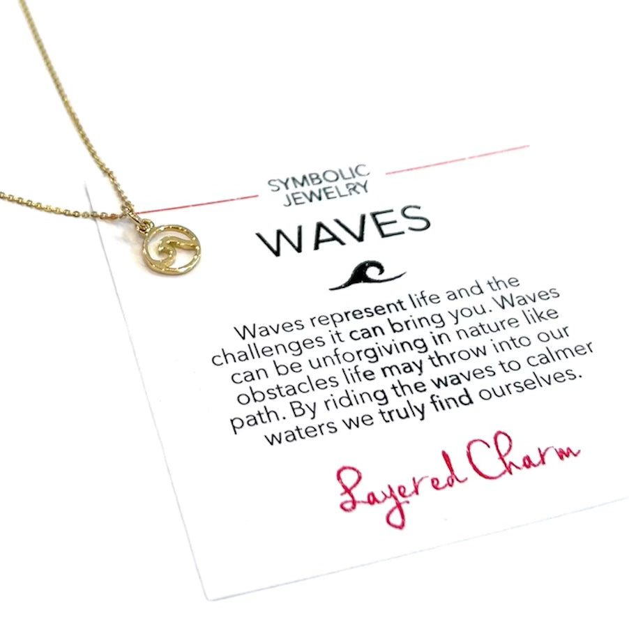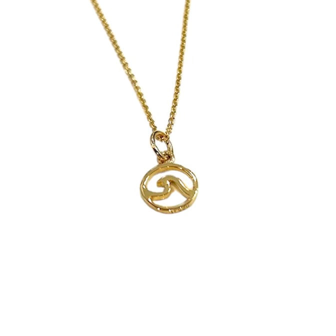 Introducing our exquisite 40-micron gold-plated sterling silver wave pendant, gracefully measuring 14mm in height and 8mm in width. It's elegantly paired with a 14kt gold-filled 18" chain for a complete, captivating look. This pendant, a masterpiece of craftsmanship, embodies the fluidity and grace of a rolling wave, symbolizing a journey of strength and resilience. The generous gold plating ensures a radiant, long-lasting gleam that perfectly complements the gold-filled chain's shimmer. Elevate your style with this meaningful, eye-catching pendant, a celebration of both elegance and endurance, evoking the beauty and power of the ocean's waves in your daily wear.