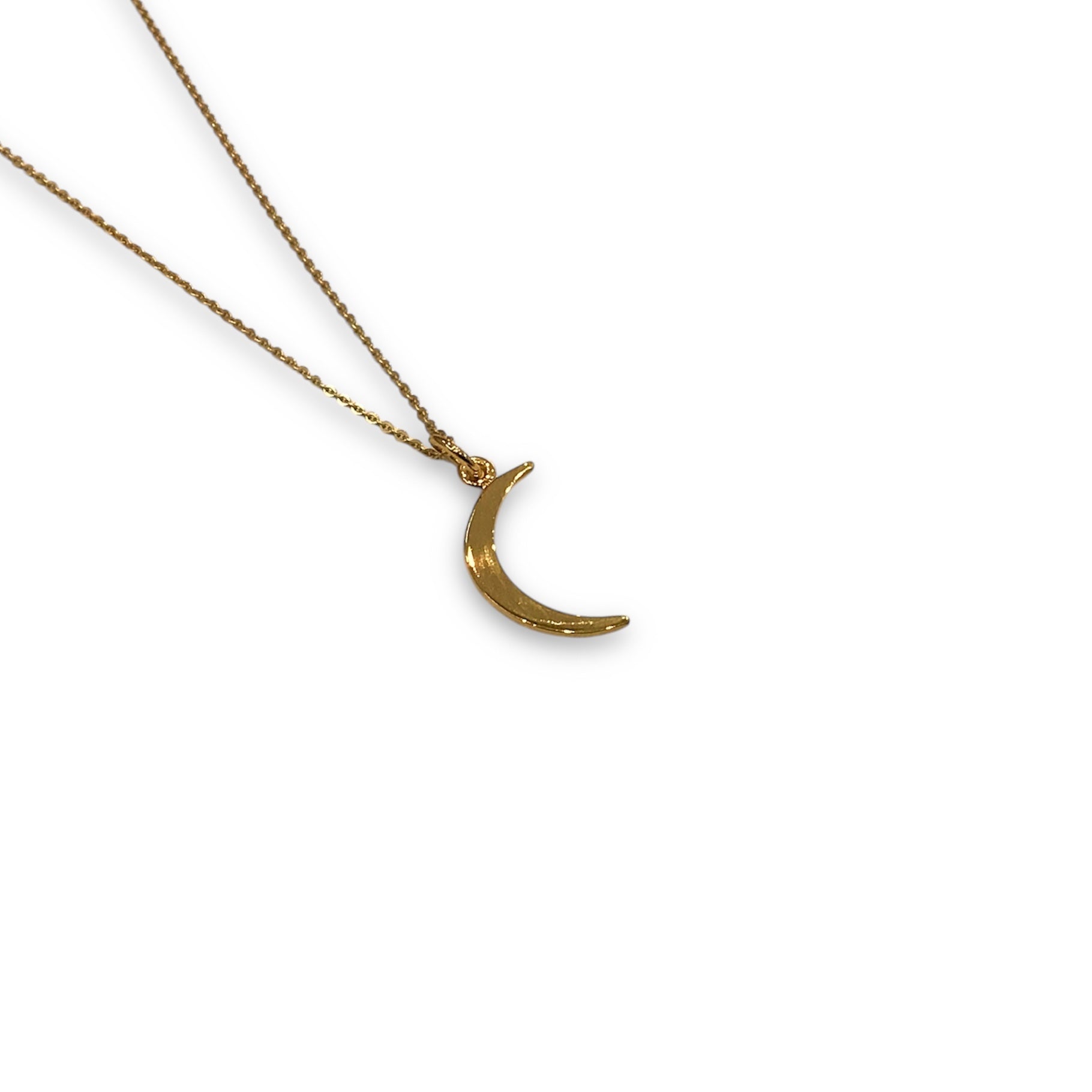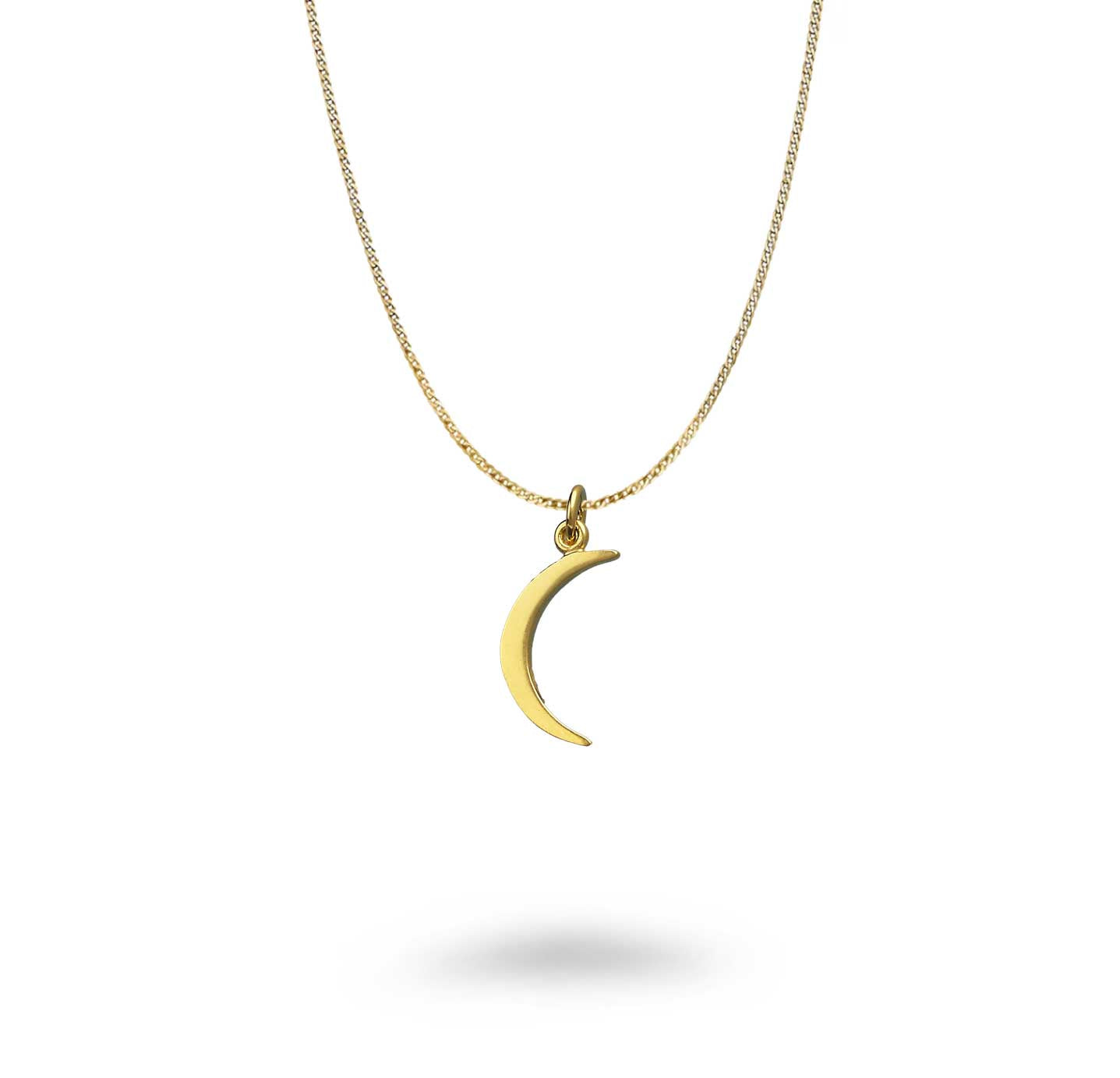 Introducing our captivating 40-micron gold-plated moon pendant, a masterpiece of intricate design, measuring 22mm in height and 8mm in width. Suspended gracefully from a 14kt gold-filled chain necklace, this piece epitomizes elegance and durability. The substantial 40-micron gold plating on 925 sterling silver ensures its enduring beauty, making it a cherished addition to your collection. The moon pendant, a symbol of resilience and harmony, becomes a beacon of style and significance as it adorns your neckline. Its exquisite craftsmanship, combined with the shimmering gold-filled chain, embodies sophistication. Experience the allure of beauty and lasting radiance with this remarkable crescent moon pendant—a statement piece for those who appreciate timeless elegance.