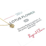 Discover serenity and style with our exquisite 40-micron gold-plated sterling silver lotus flower pendant, measuring 12mm in height and 9mm in width. This pendant is elegantly paired with a 14kt gold-filled 18" chain for a complete, captivating look. The lotus, a symbol of purity and rebirth, graces your neckline with grace and meaning. The generous gold plating ensures enduring radiance, complementing the shimmer of the gold-filled chain. Elevate your style with this meaningful, eye-catching pendant, celebrating elegance and renewal. Embrace the beauty of the lotus in your daily wear and carry the symbolism of renewal and purity with you always.