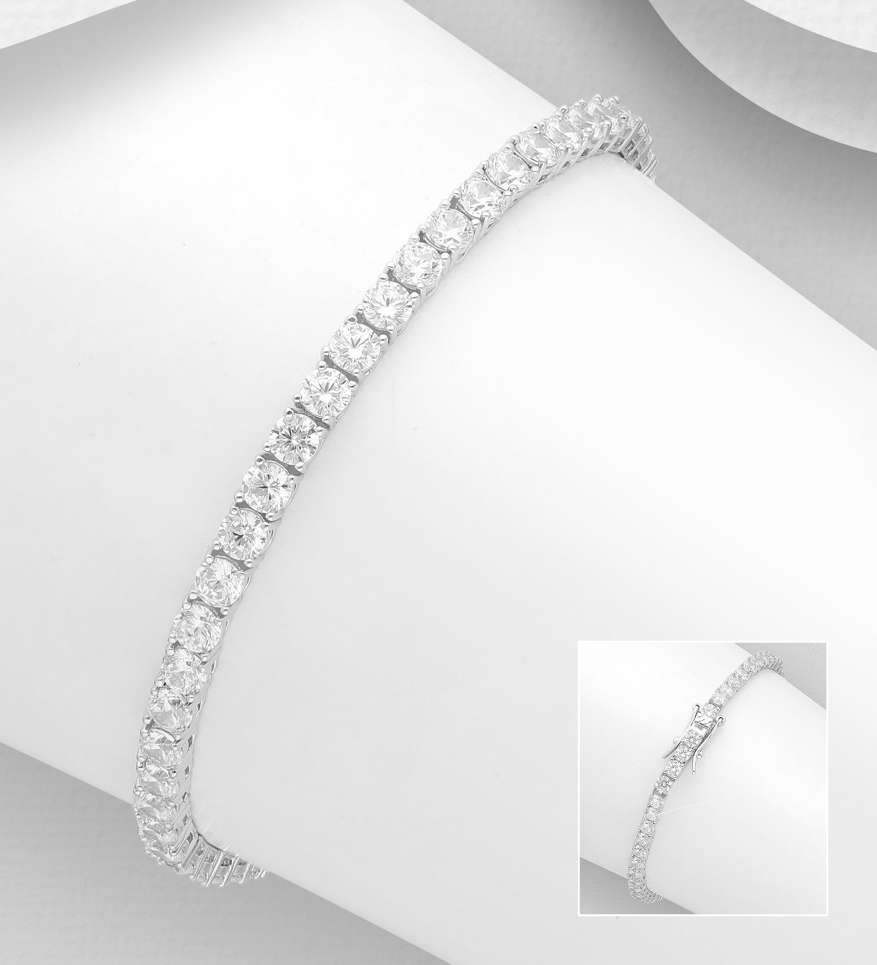 This 3mm CZ Tennis Bracelet is crafted with sterling silver for an elegant yet durable look. Its high quality cubic zirconia stones provide a sparkle and shine perfect for any night out. An ideal accessory for any jewelry collection.