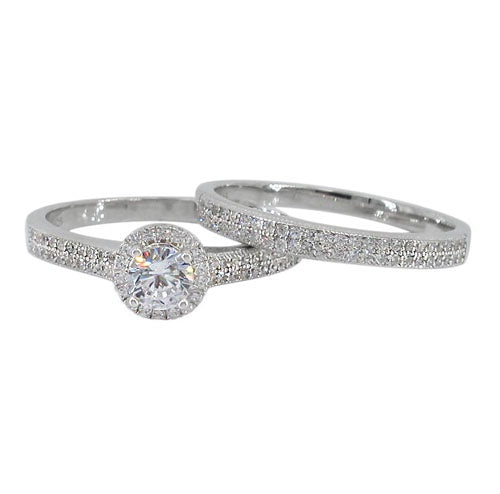 Sterling silver with rhodium, ring set with 5mm cubic zirconia, 3mm band.