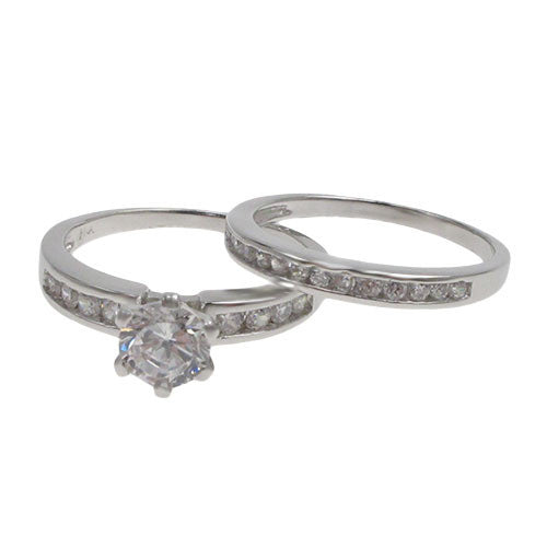 Rhodium-Plated Sterling Silver Ring with Cubic Zirconia