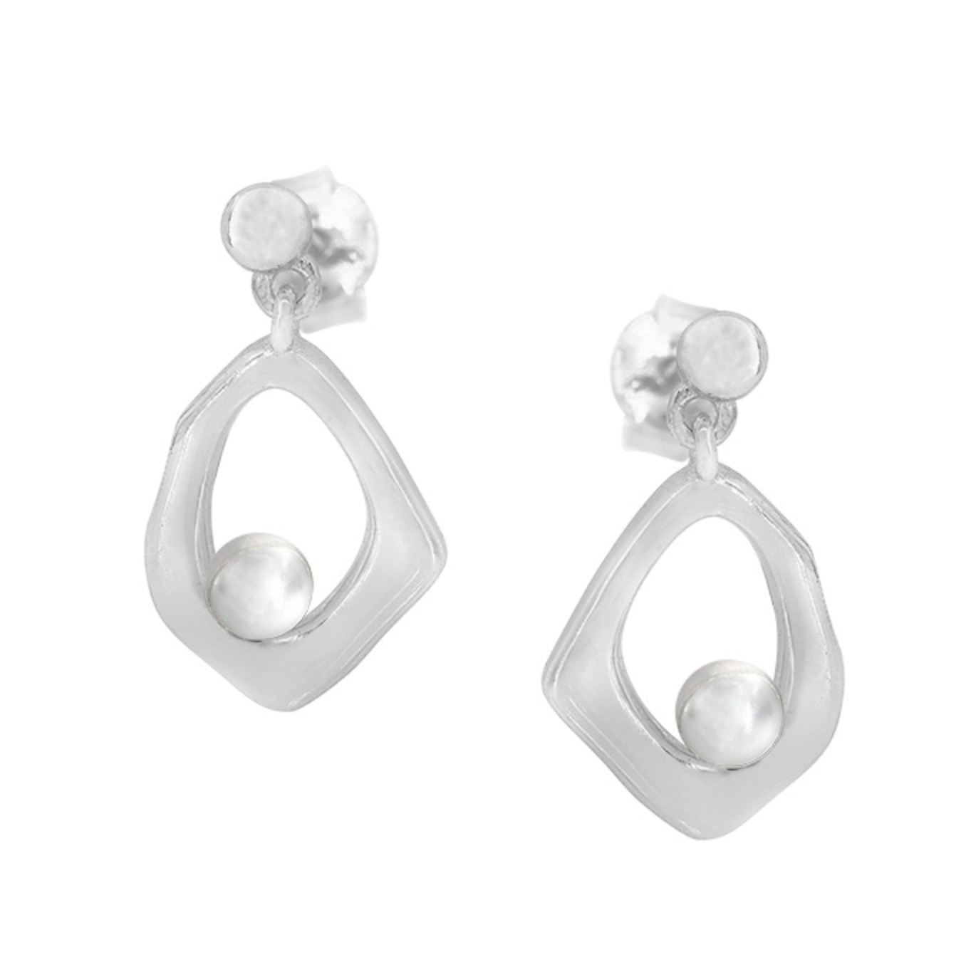 10x17mm stud earrings with 3mm freshwater pearl in rhodium-plated sterling silver.