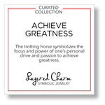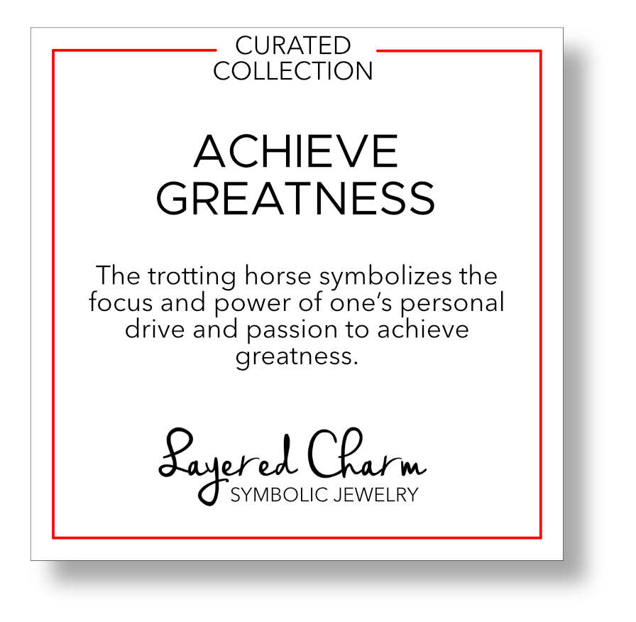 The trotting horse symbolizes the focus and power of one’s personal drive and passion to achieve greatness.