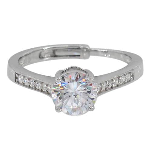 Sterling silver with rhodium, adjustable ring with 7mm cubic zirconia.