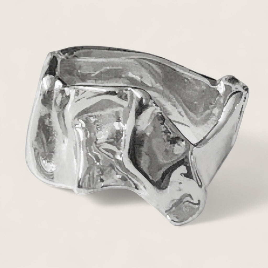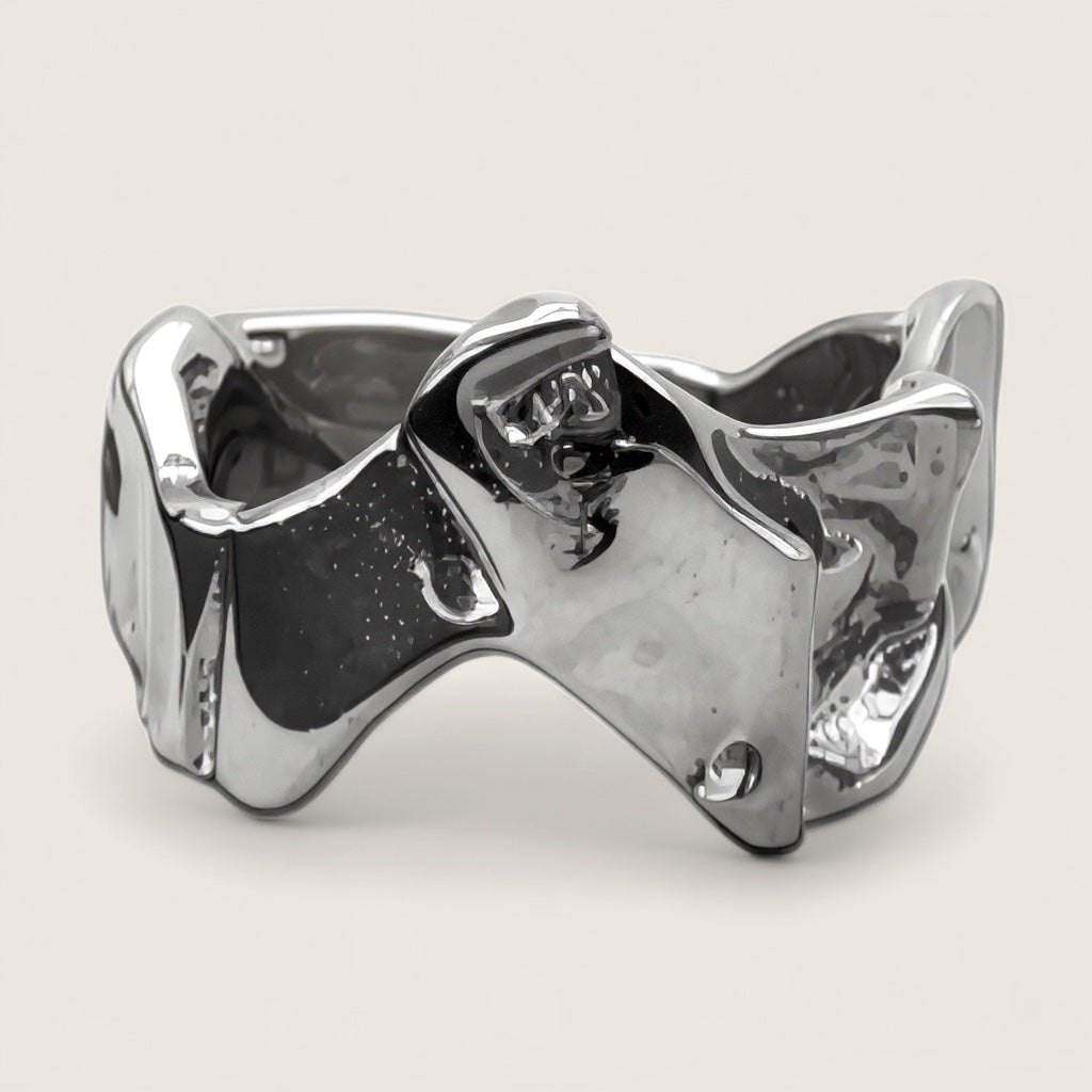 Unleash raw energy with the Voltage Collection's Irregular Textured Wavy Ring. Crafted from premium 316L stainless steel, this bold piece features a dynamic, undulating surface that captures light and shadow with every movement. The rugged, wavy texture gives it an unpolished, rebellious character — perfect for those who live by their own rules. Hypoallergenic, tarnish-resistant, and made to endure, this ring blends industrial strength with untamed artistry. Wear it solo for a sharp statement or layer it with other pieces for a full-voltage look.