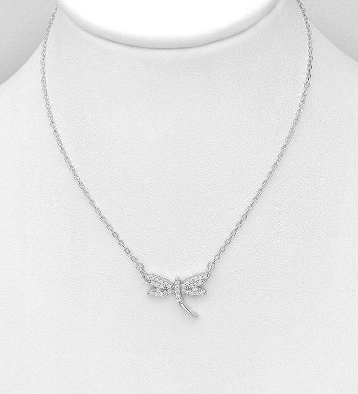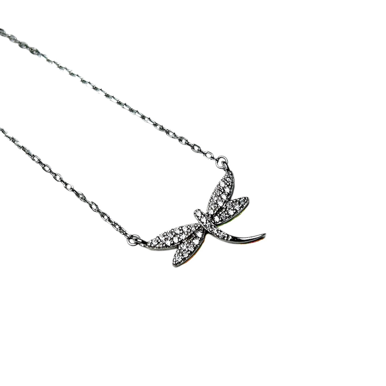 Sterling Silver Dragonfly Necklace with CZ Accents