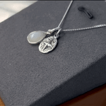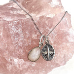 The gemdrop collection is Layered Charm's pairing of a beautiful symbolic pendant with a semiprecious gemstone to enhance the metaphysical strength of the jewelry piece.