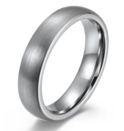 Super durable this tungsten carbide ring will not tarnish and is scratch resistant. Make a great low maintenance wedding ring option. The strength of tungsten matched with the comfort-fit inlay, making it more enjoyable and easy to wear.  The design of the tungsten is a beveled top brushed pattern and sides.  If you are allergic to most metals, this is a great option, and this ring is also nickel-free.