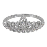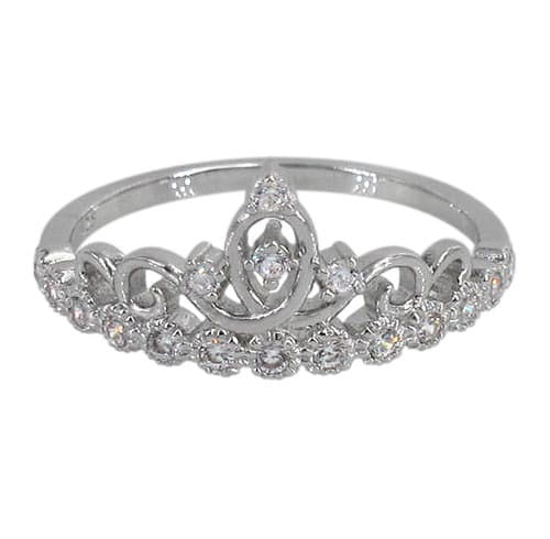 Sterling silver with rhodium, 10mm crown ring with cubic zirconia, 1mm band