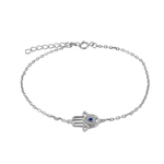 Sterling silver with rhodium, 10x12mm Hamsa bracelet with cubic zirconia, 7″ + 1″ extension