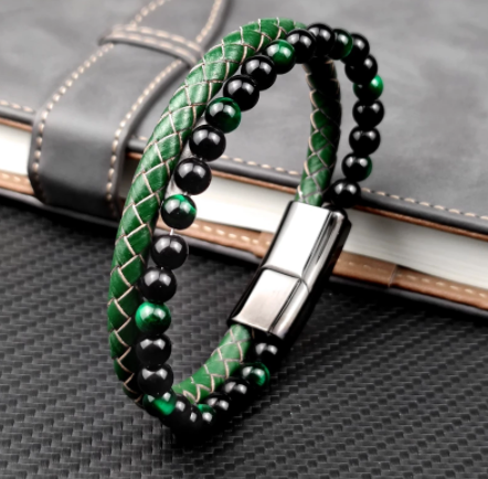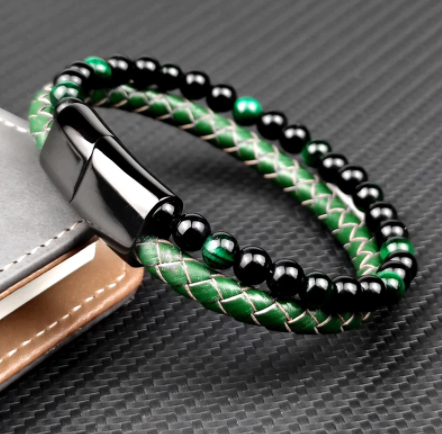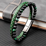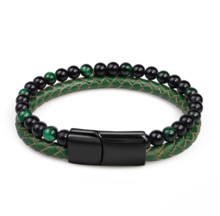 Enjoy this beautifully crafted genuine leather and natural stone combination to finish a look. This bracelet is made with a stainless steel slide and magnet back clasp for a secure closure yet easy to put on yourself.