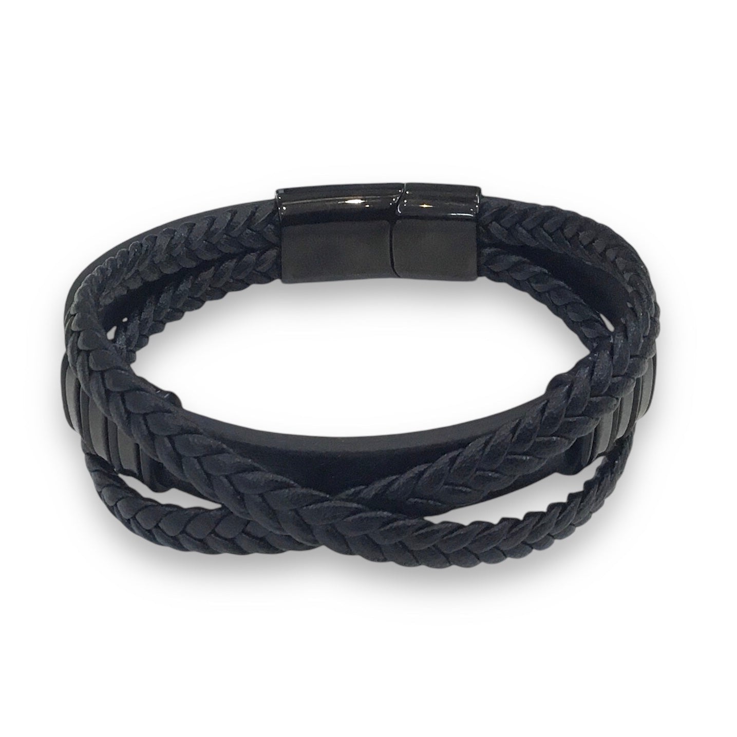 Criss-Cross Braid Leather Bracelet with Stainless Steel Accents