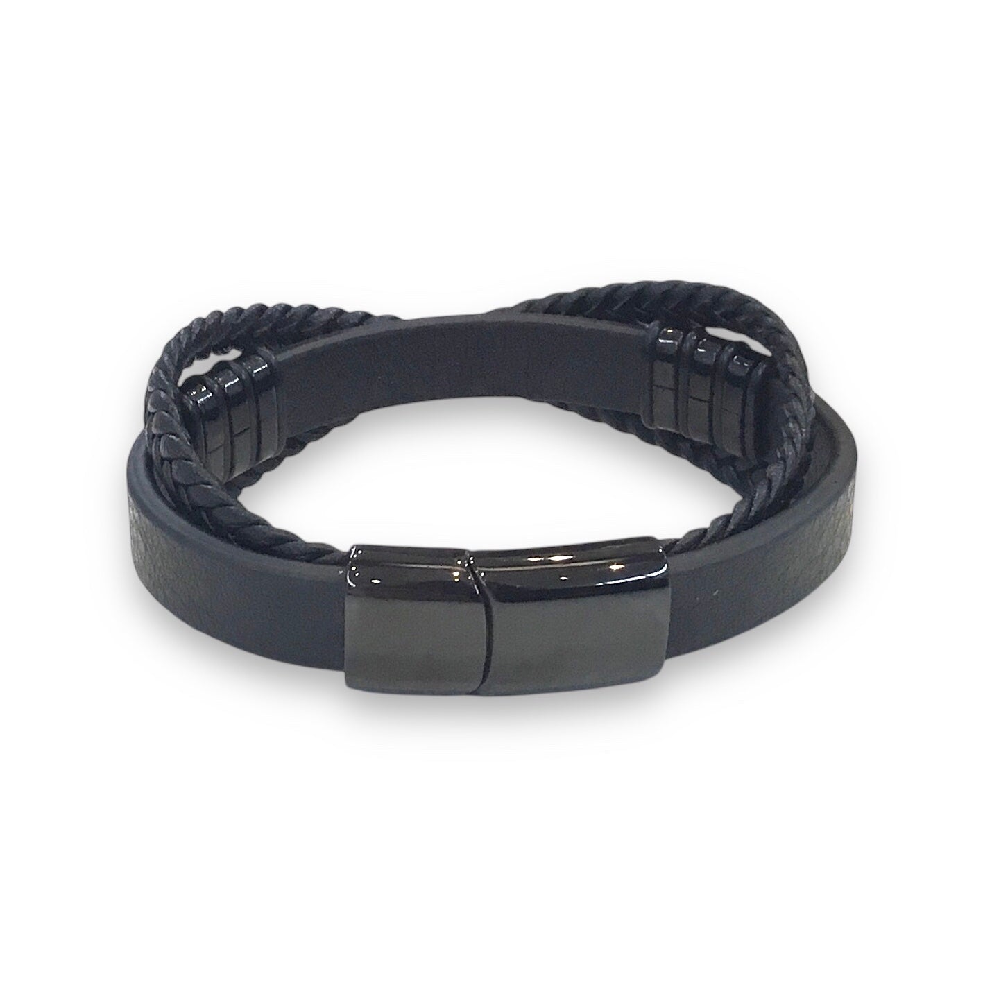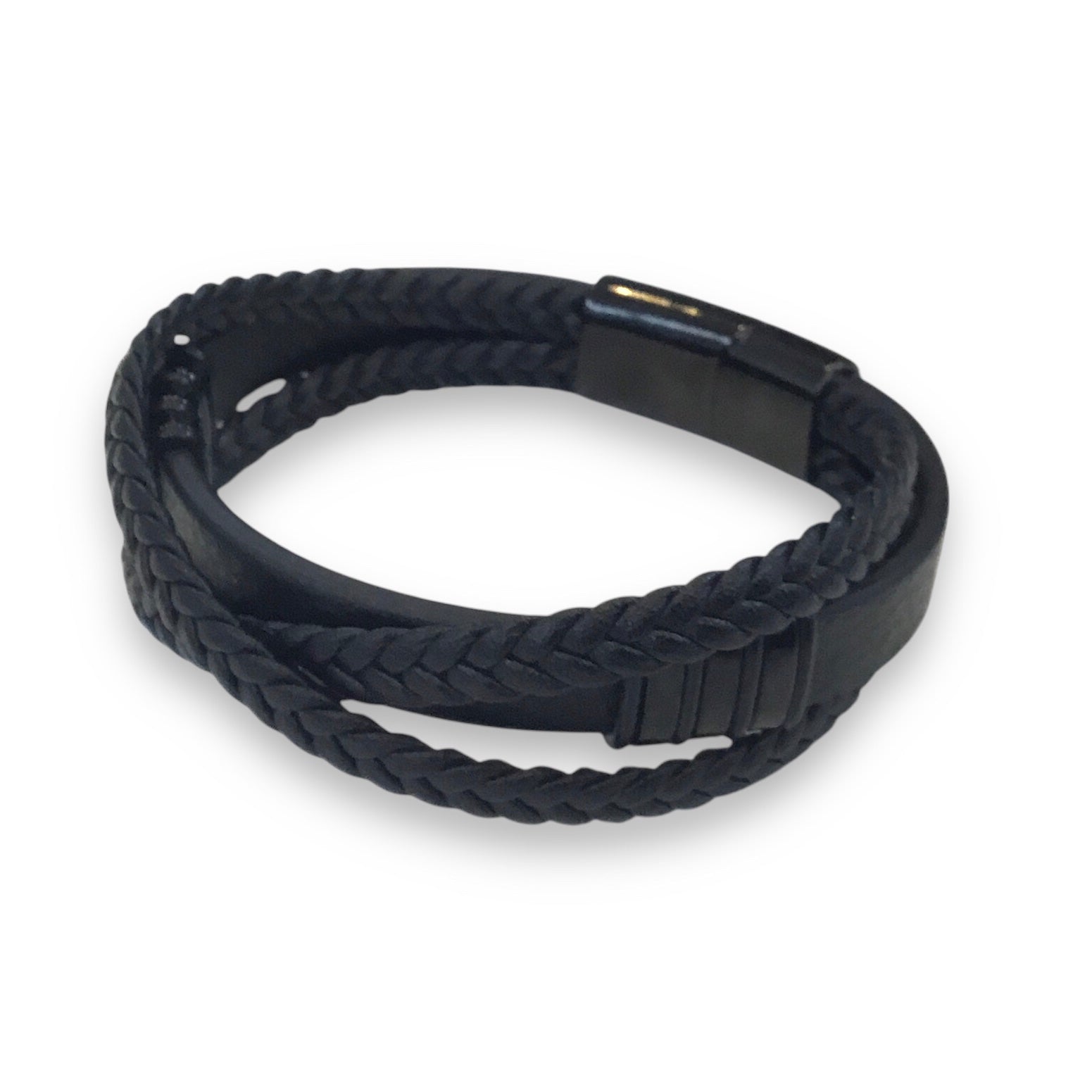 Elevate your style with this sleek and versatile bracelet. Crafted with premium genuine leather, this design features an intricate criss-cross braid flanking a smooth flat leather center, creating a striking contrast. Polished stainless steel accents add a touch of modern sophistication and durability.
