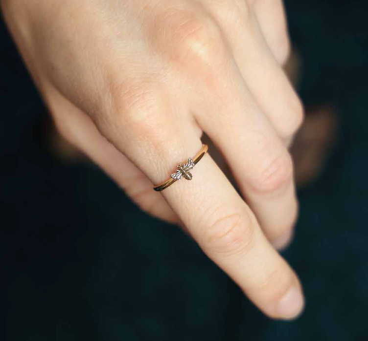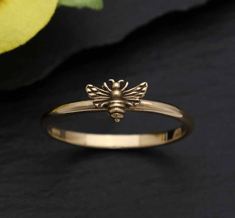 Bees symbolize hard work and cooperation. Bees will protect their home at all costs. They represent loyalty and courage. Enjoy this thin realistic bee ring available with silver band and bronze bee or all bronze option.