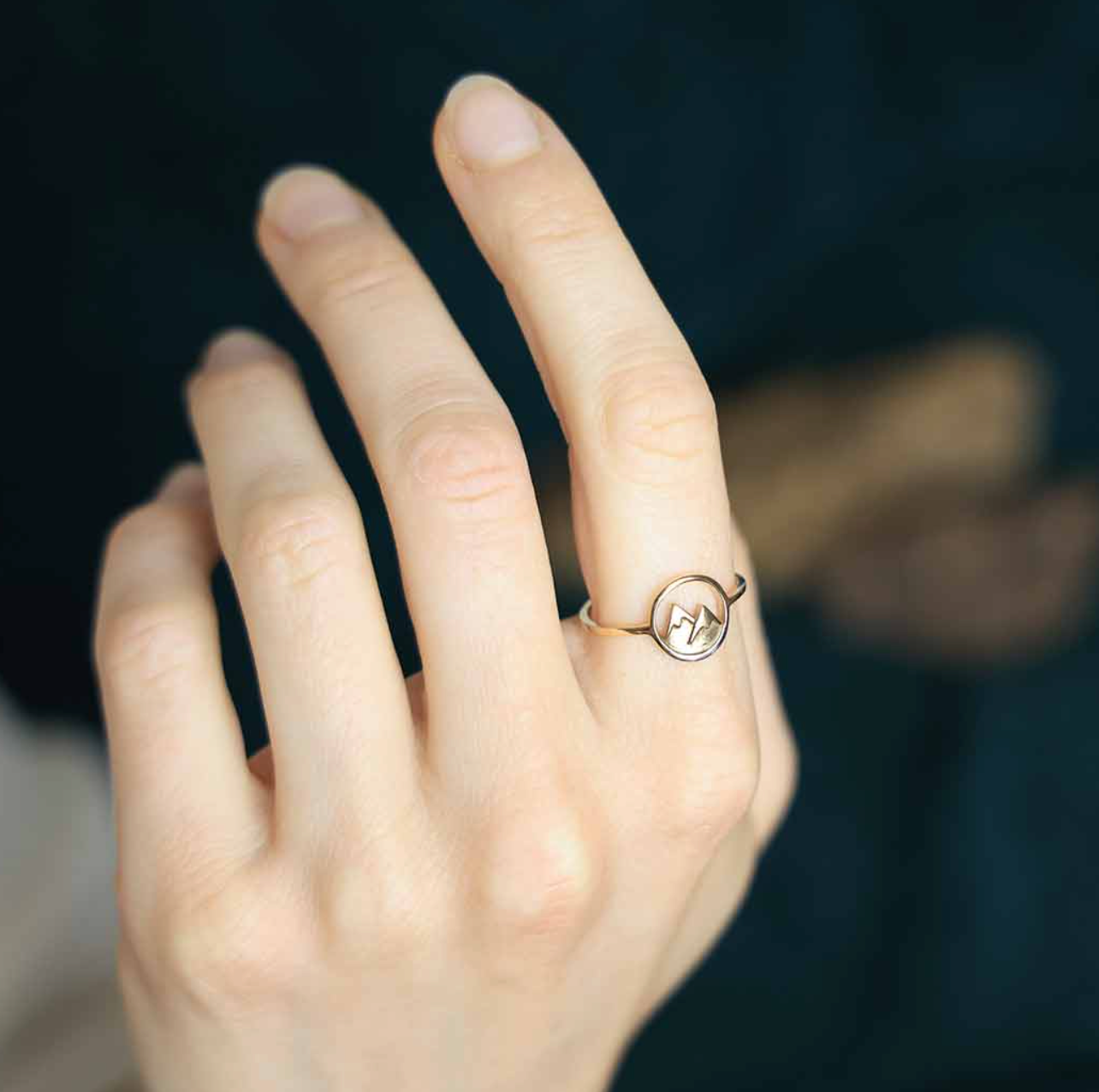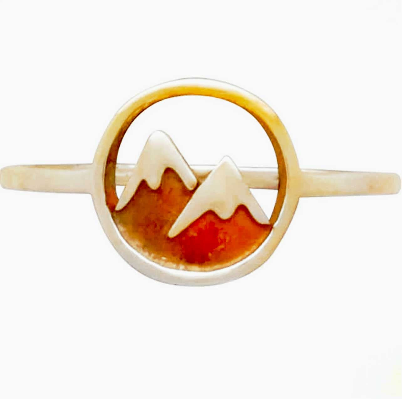 Mountains are a majestic representation of our inspiration and goals. They are a symbol to take the road less travelled. Enjoy this open circle snow capped mountain thin band bronze ring.