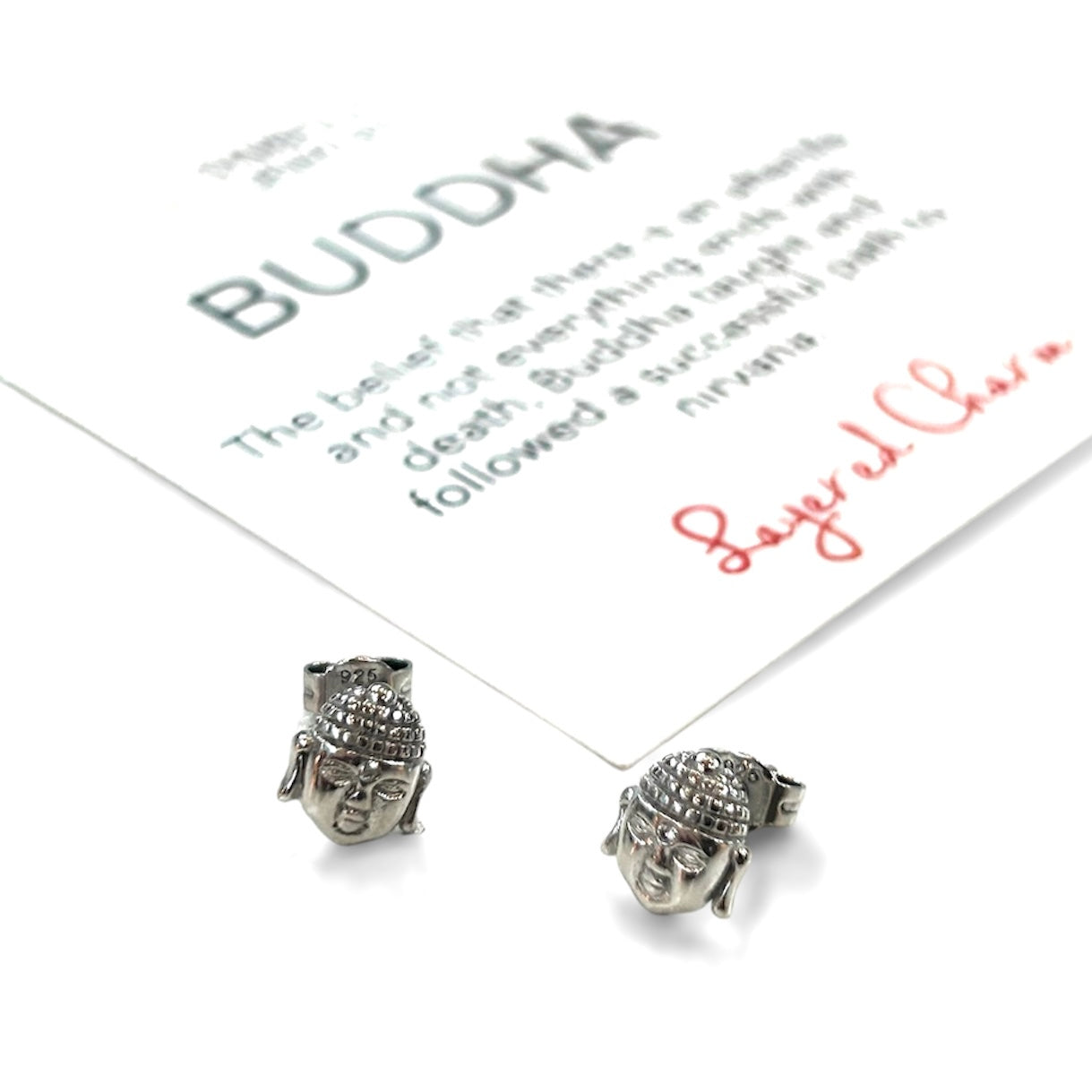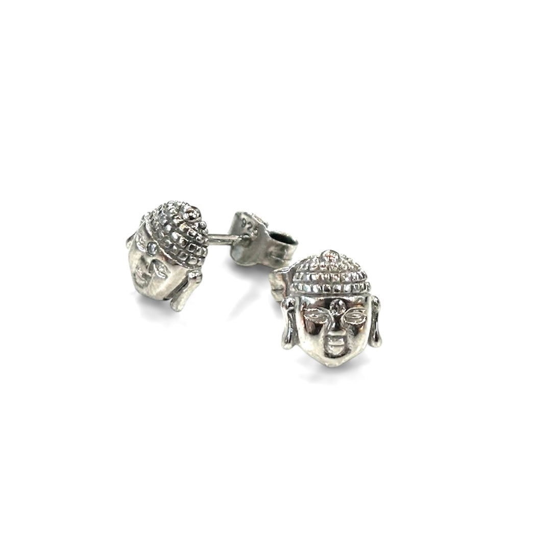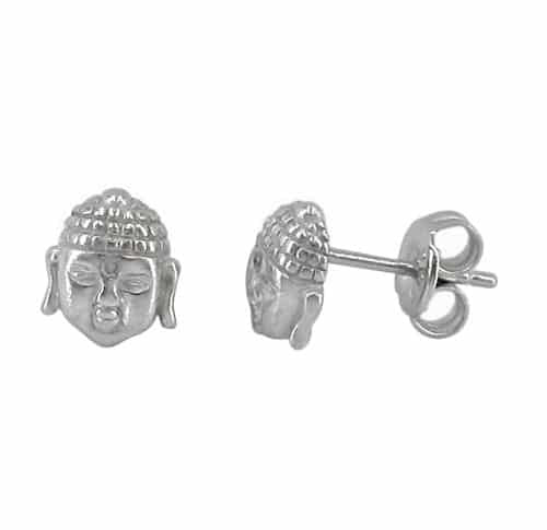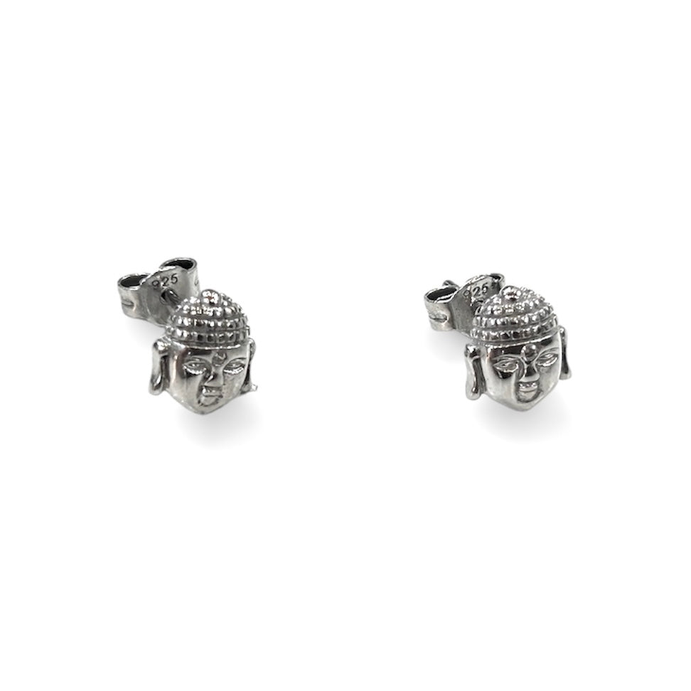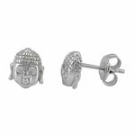 Sterling silver with rhodium Buddha head earring, 8x7mm frame