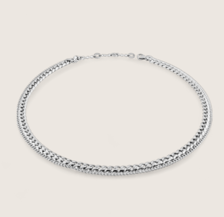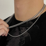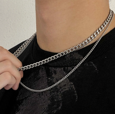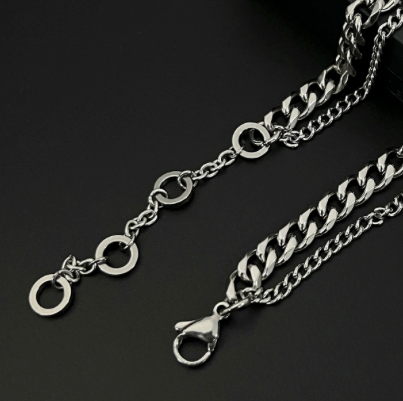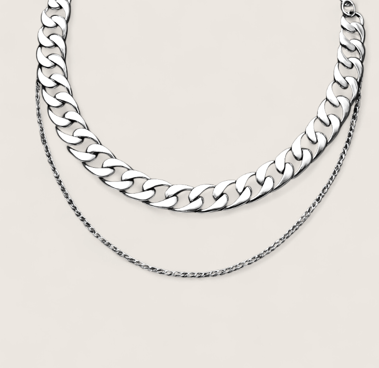 Forged in mirror-bright 316L stainless steel, Cascade Curb Duo brings three graduated curb-link chains together in one bold, statement-making necklace. Each layer—measuring 20″, 21″ and 22″—builds depth and movement, draping effortlessly across your collarbone for a dynamic, dimensional look. Precision-cut links catch the light at every angle, while the robust lobster-claw clasp ensures a secure fit. Wear it on its own for a stand-alone symbol of modern strength, or layer it with pendants and rings to amplify your Anvil&Ore arsenal. Perfect for elevating streetwear or sharpening a weekend ensemble, this piece is the ultimate in rugged refinement.