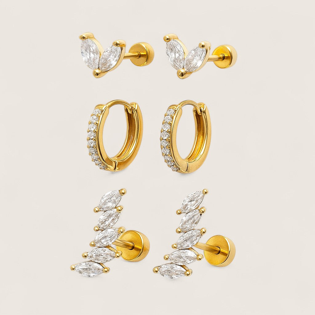 • Marquise Climber Studs: Three marquise-cut CZ stones arranged in a graceful ear-climbing arc