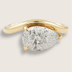 The Celestial Curve Ring reimagines elegance with a bold twist. Featuring a premium pear-shaped cubic zirconia turned gracefully on its side, this design breaks tradition with brilliance. The flowing, polished band curves naturally around the stone, creating a modern silhouette that symbolizes balance, individuality, and new perspectives.