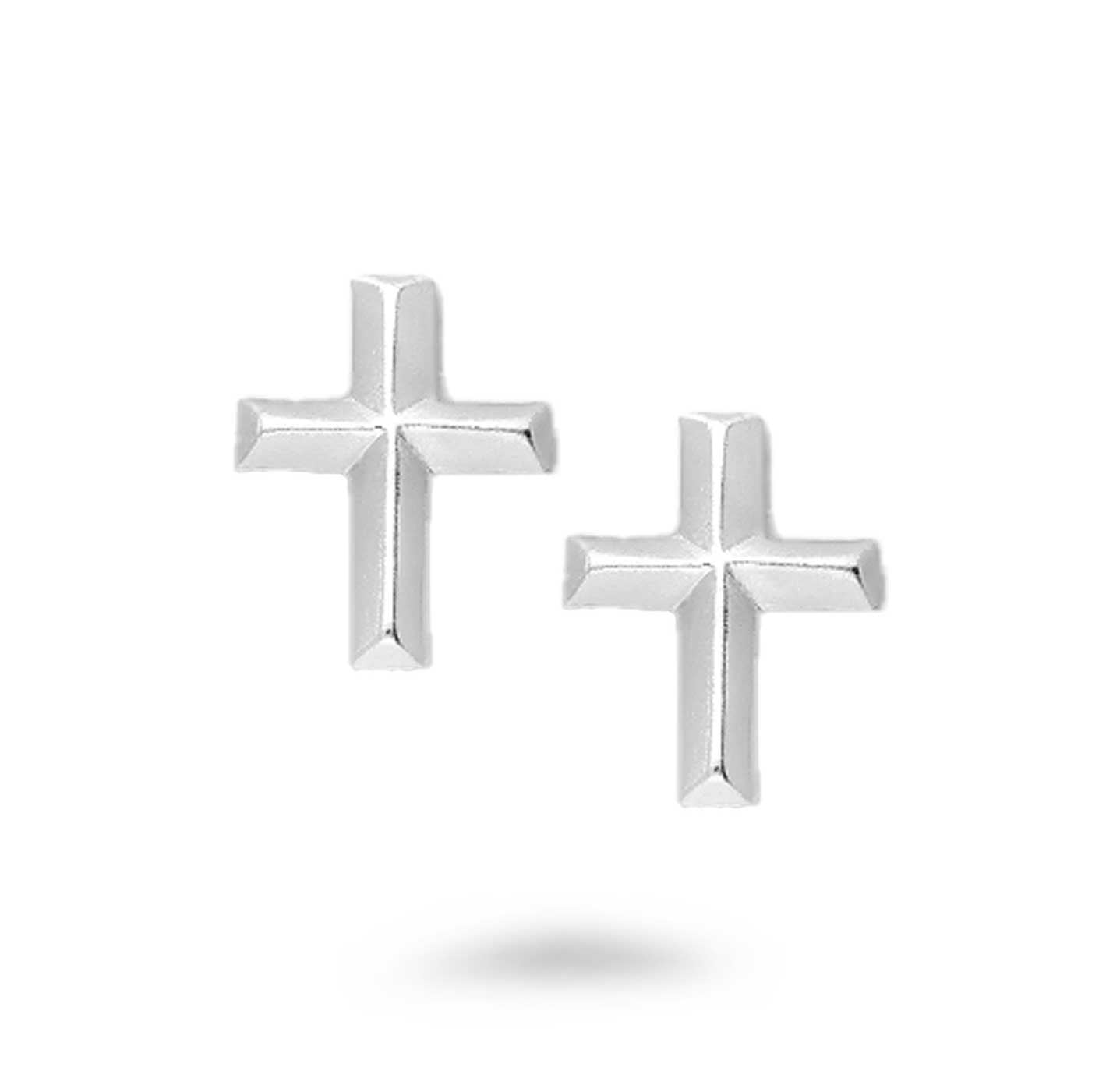 Show your faith and shine with these sterling silver cross center peak stud earrings with butterfly backs.