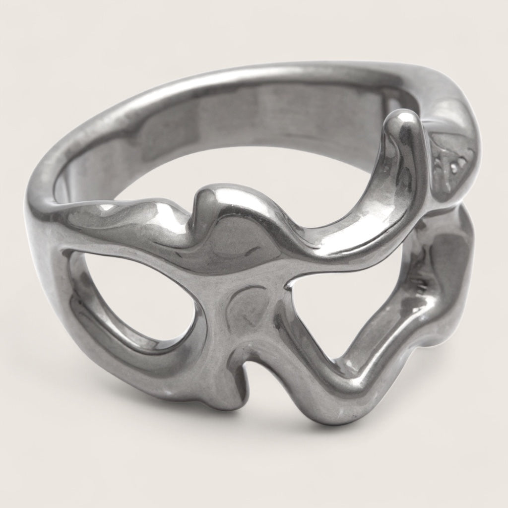 Born from disruption. The Chaos Alloy Ring captures the raw, unpredictable energy of molten metal frozen in time. With its fractured, fluid form and high-polish stainless steel shine, it blurs the lines between nature and machine. Lightweight, bold, and unapologetically different — this ring was made for those who don’t follow patterns, they break them.