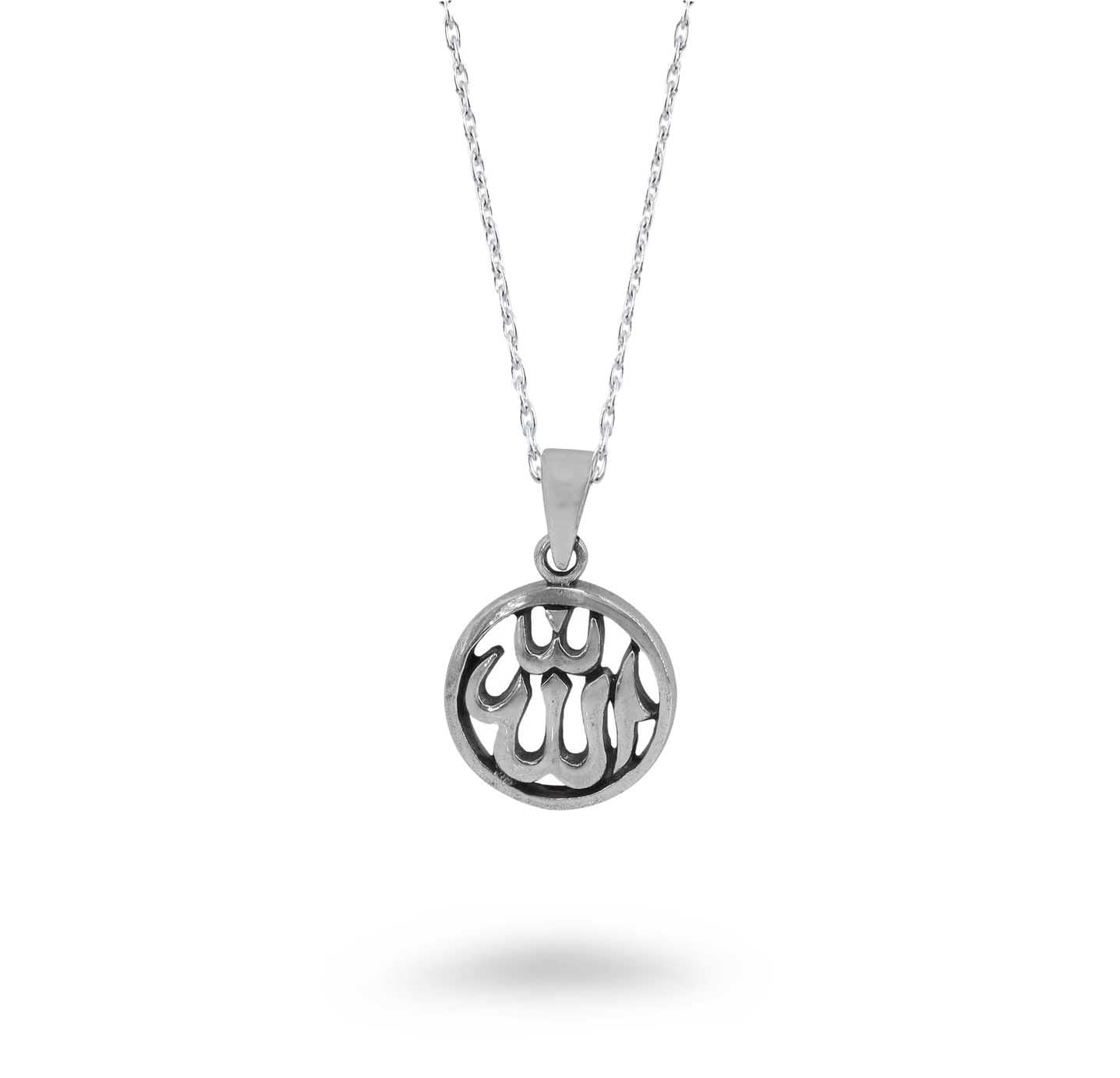 Smooth Polished Sterling Silver Allah Pendant Necklace