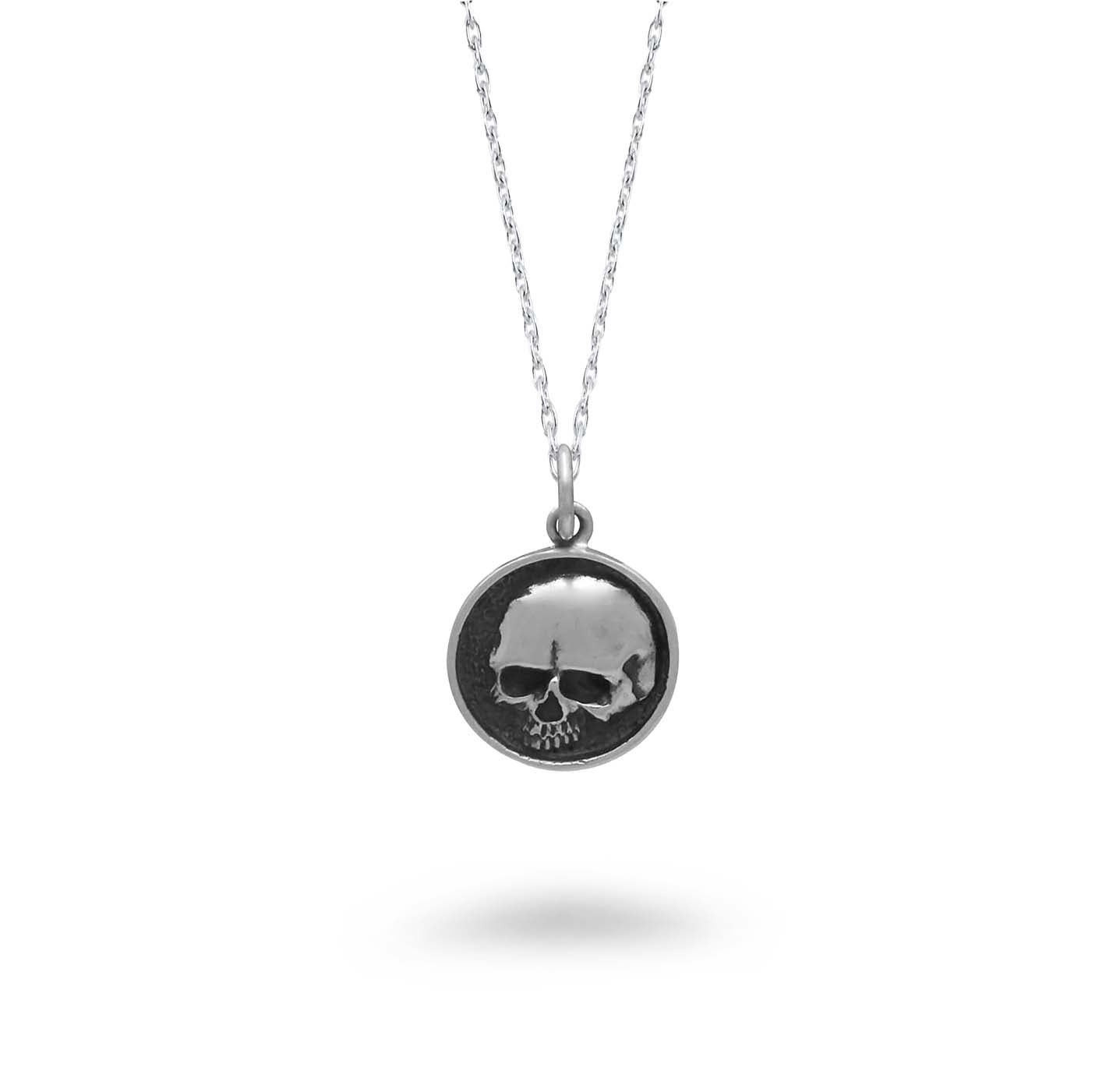 Enjoy this beautifully textured realistic skull pendant necklace paired with a sterling silver 18" chain. The pendant size is: 18mm by 12mm.