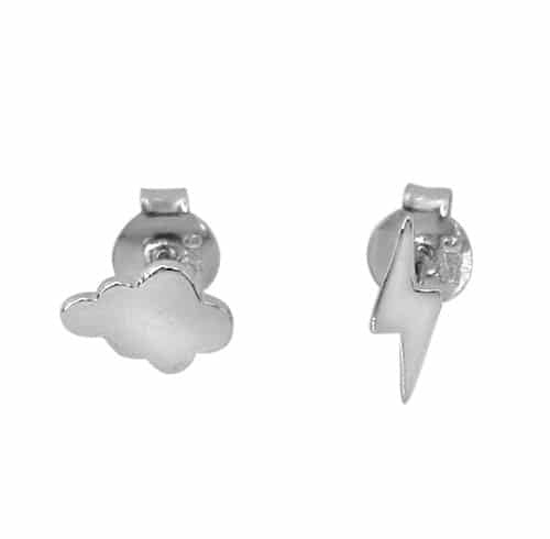 Sterling silver with rhodium mix and match earring, 5x7mm(cloud), 3x8mm(lightening).