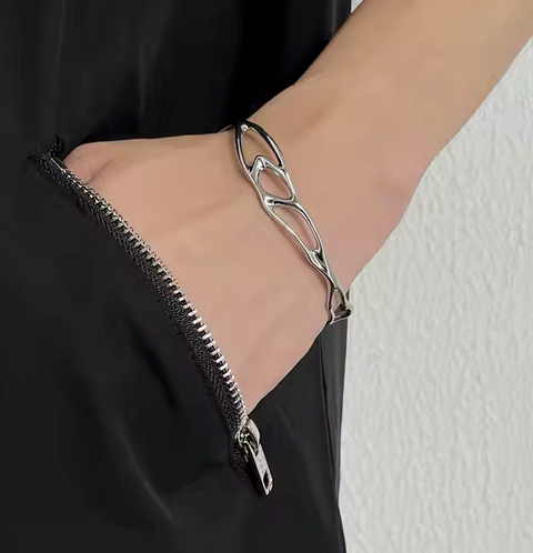 Liquid movement, frozen in time. The Cryo Drift Cuff weaves polished stainless steel into a sculptural flow of hollow energy, capturing the perfect balance between strength and air. Lightweight and endlessly striking, it’s a future-forged statement built for those who move beyond limits.
