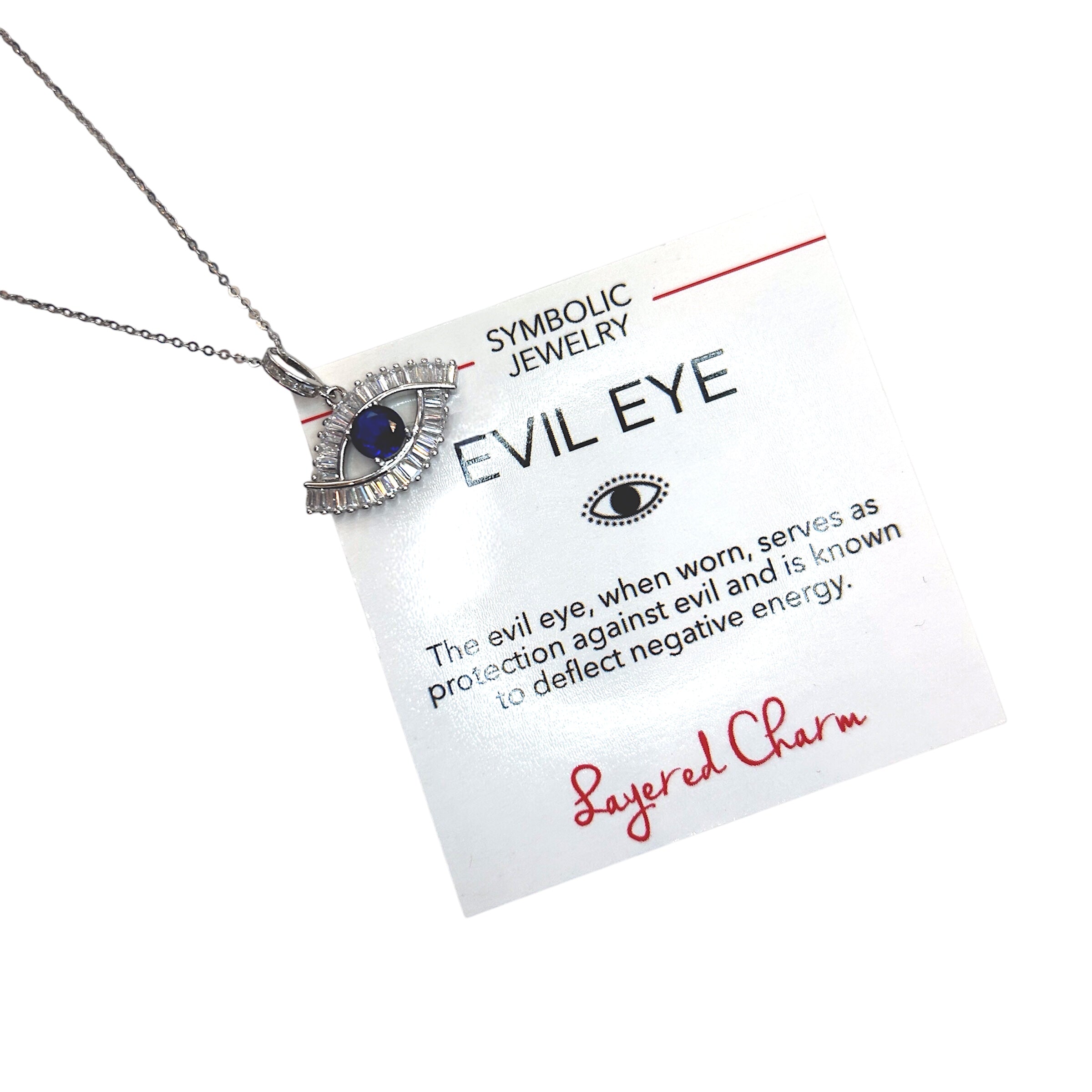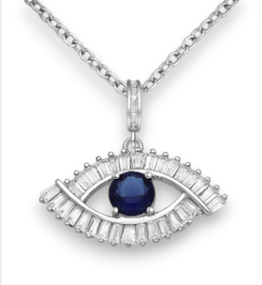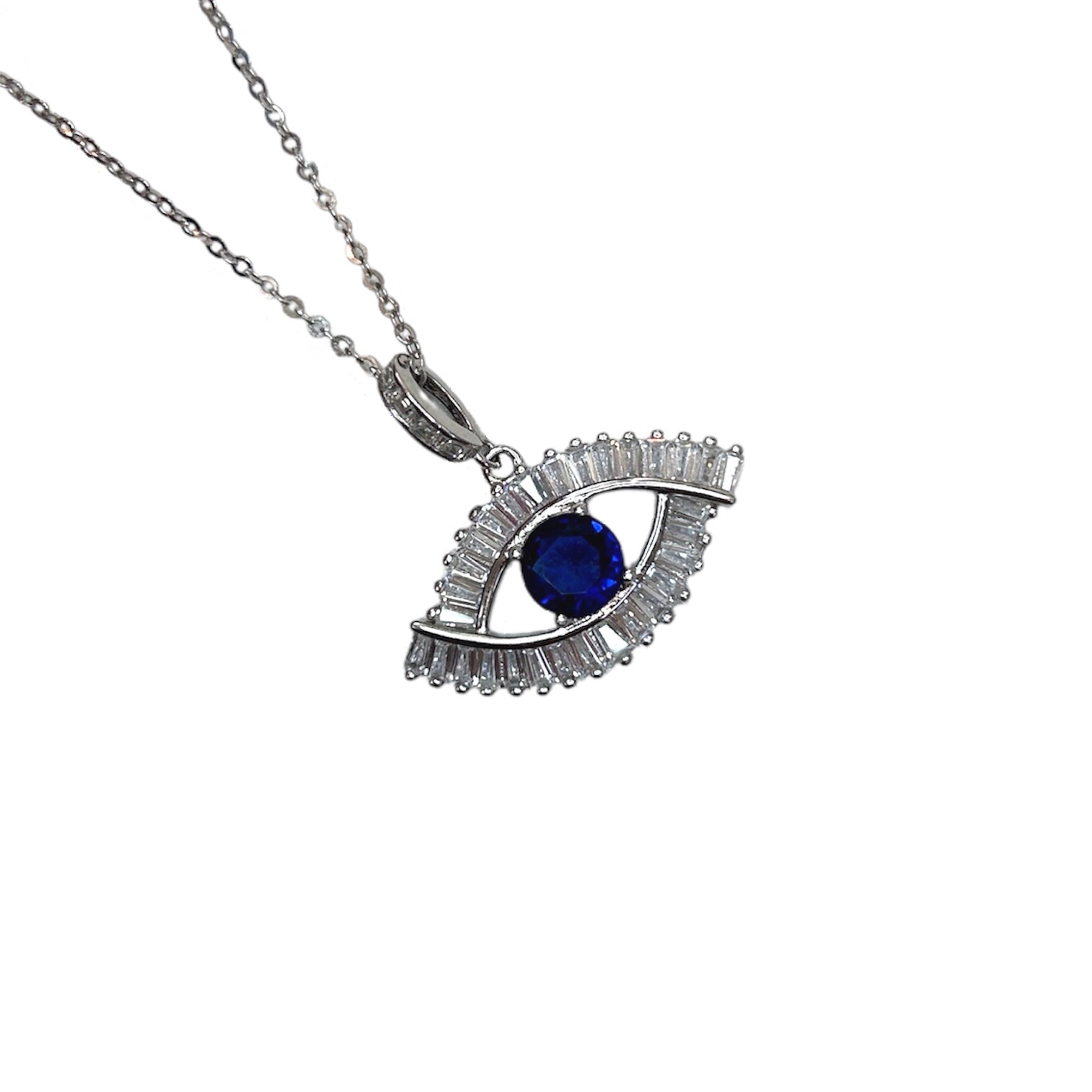 Sterling Silver CZ Baguette Evil Eye Necklace – 24mm x 22mm