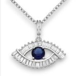 A symbol of protection and good fortune, this striking Evil Eye necklace features a beautifully crafted baguette-cut cubic zirconia design set in sterling silver. The intricate arrangement of CZ stones enhances its brilliance, creating a dazzling statement piece.
