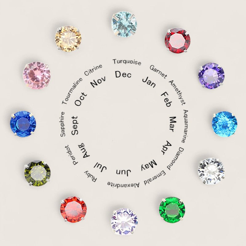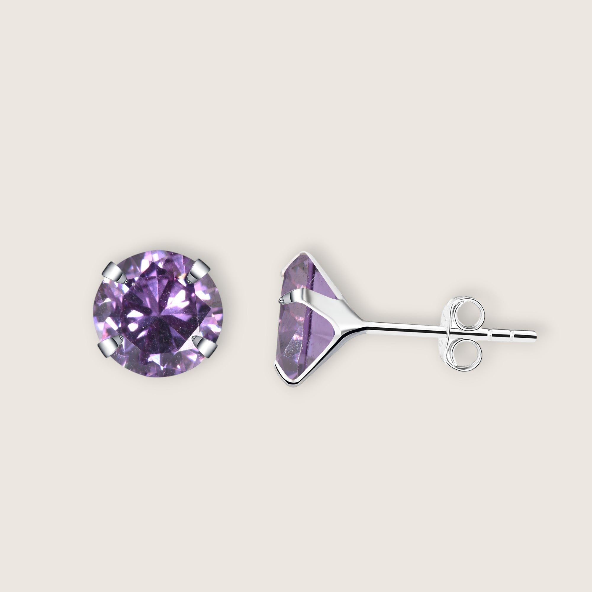 Celebrate your birth month with our Birthstone CZ Stud Earrings, available in 6mm diameter size, featuring 925 Sterling Silver settings plated in enduring rhodium. These earrings offer a personalized touch with each cubic zirconia stone representing a specific birthstone. The precision-cut cz's are securely held in place with four-prong settings, and the butterfly backs ensure a comfortable and secure fit. Whether you choose your own birthstone or that of a loved one, these earrings beautifully combine elegance and sentiment. Adaptable for daily wear or special occasions, they add a touch of sparkle and meaning to your style, making them a cherished accessory in your jewelry collection. So bring on the baby showers, birthday parties, and Valentine's for all the mommies, sisters, and besties in life.  You're ready!