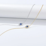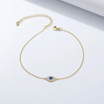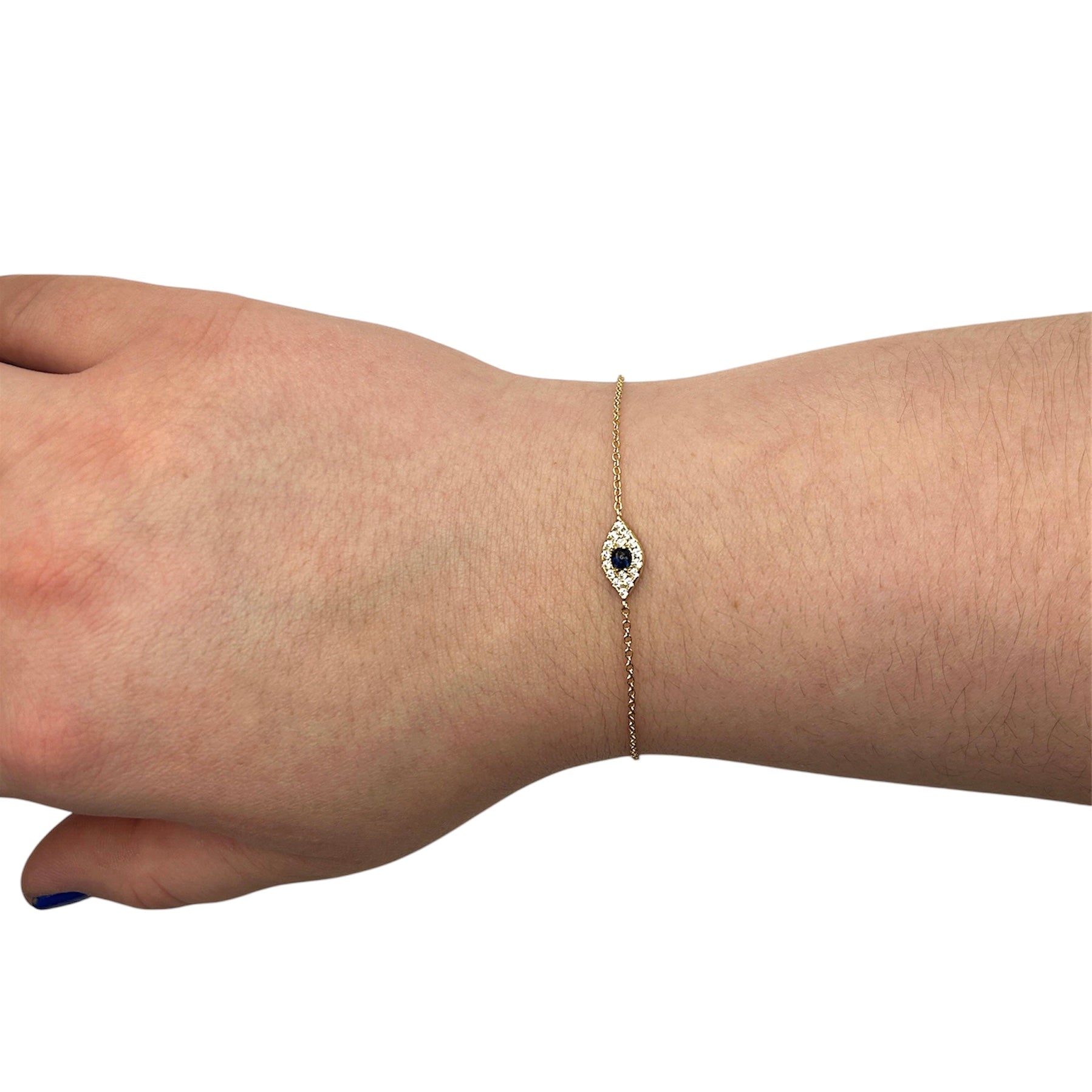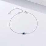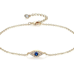 This stunning cable chain bracelet is adorned with a blue cubic zirconia evil eye pendant that is sure to be enjoyed.