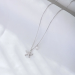 This necklace is made of 925 sterling silver with gold or rhodium plating. Rest assured this necklace is nickel free. The cute little pendant is beautifully encrusted with white triple AAA grade cubic zirconia. This chain features a lobster clasp and adjustable setting to wear 16" to 18" in length. The pendant is 12.8mm tall.
