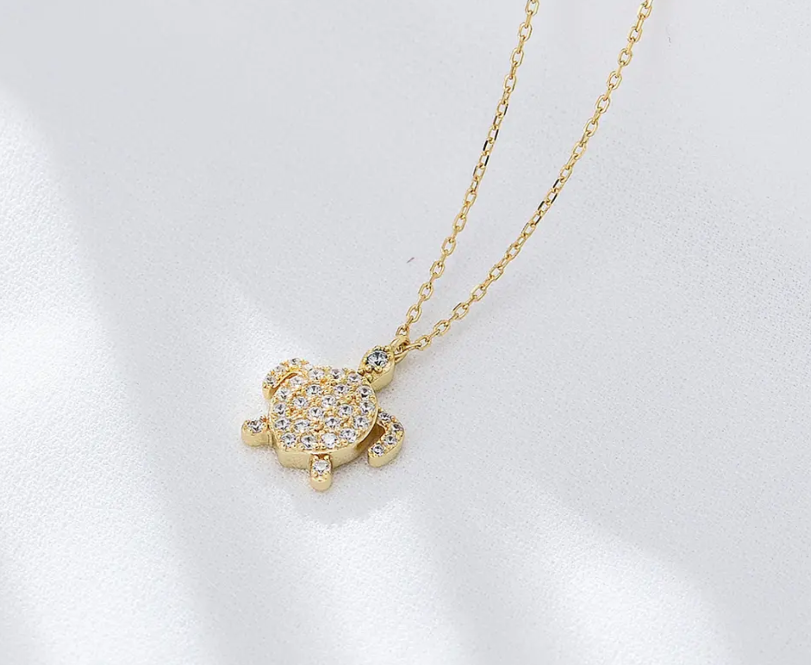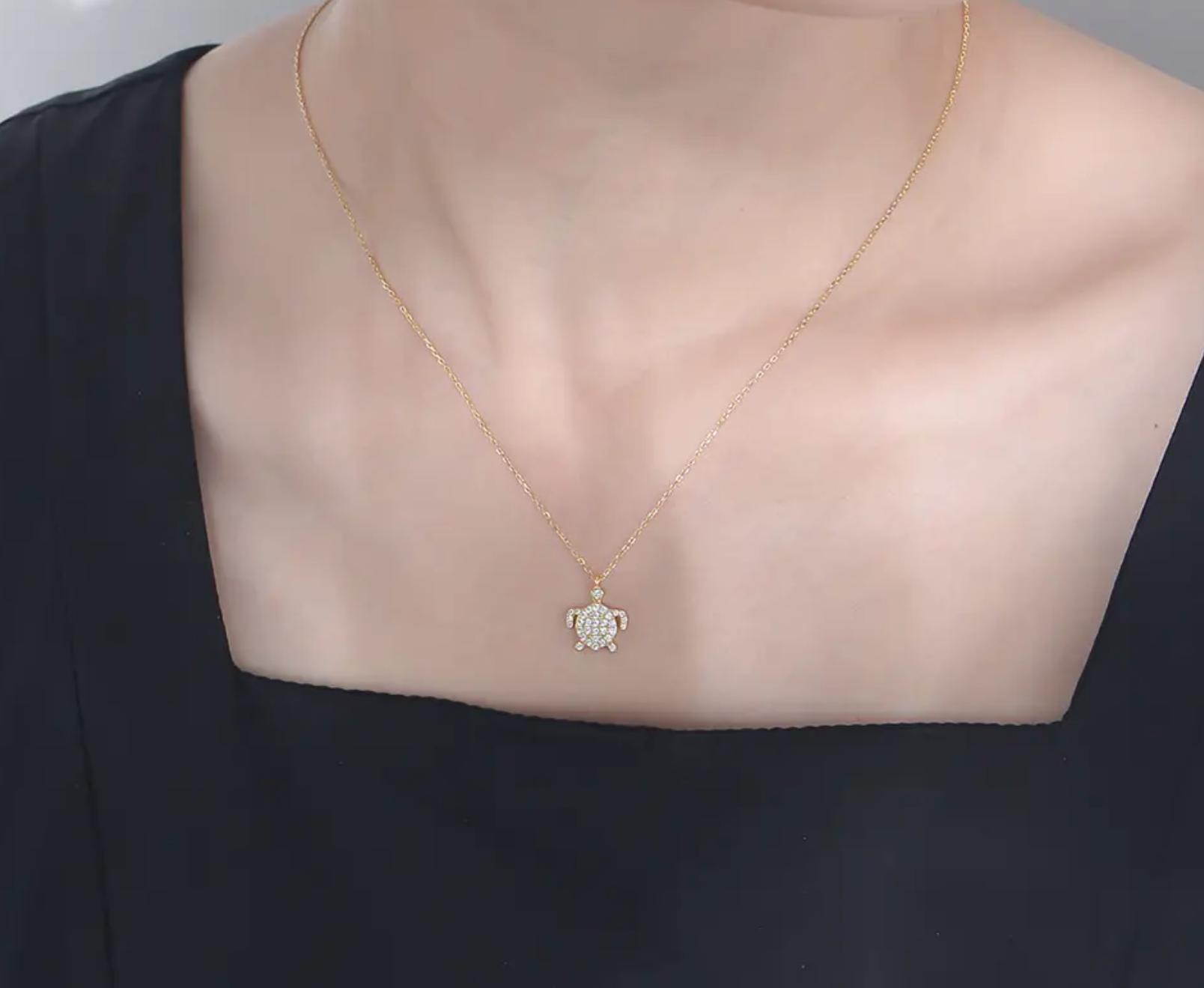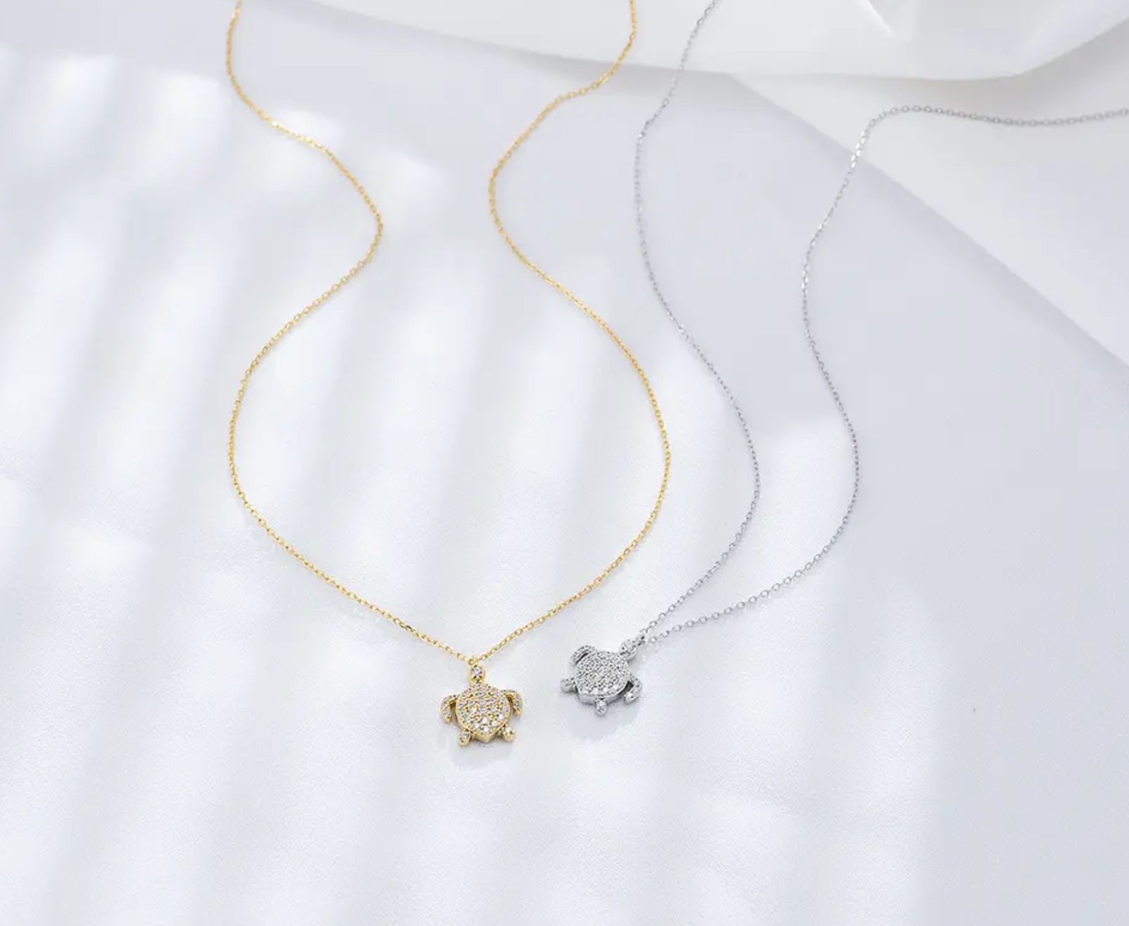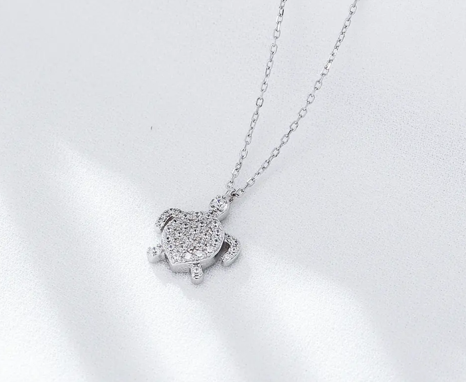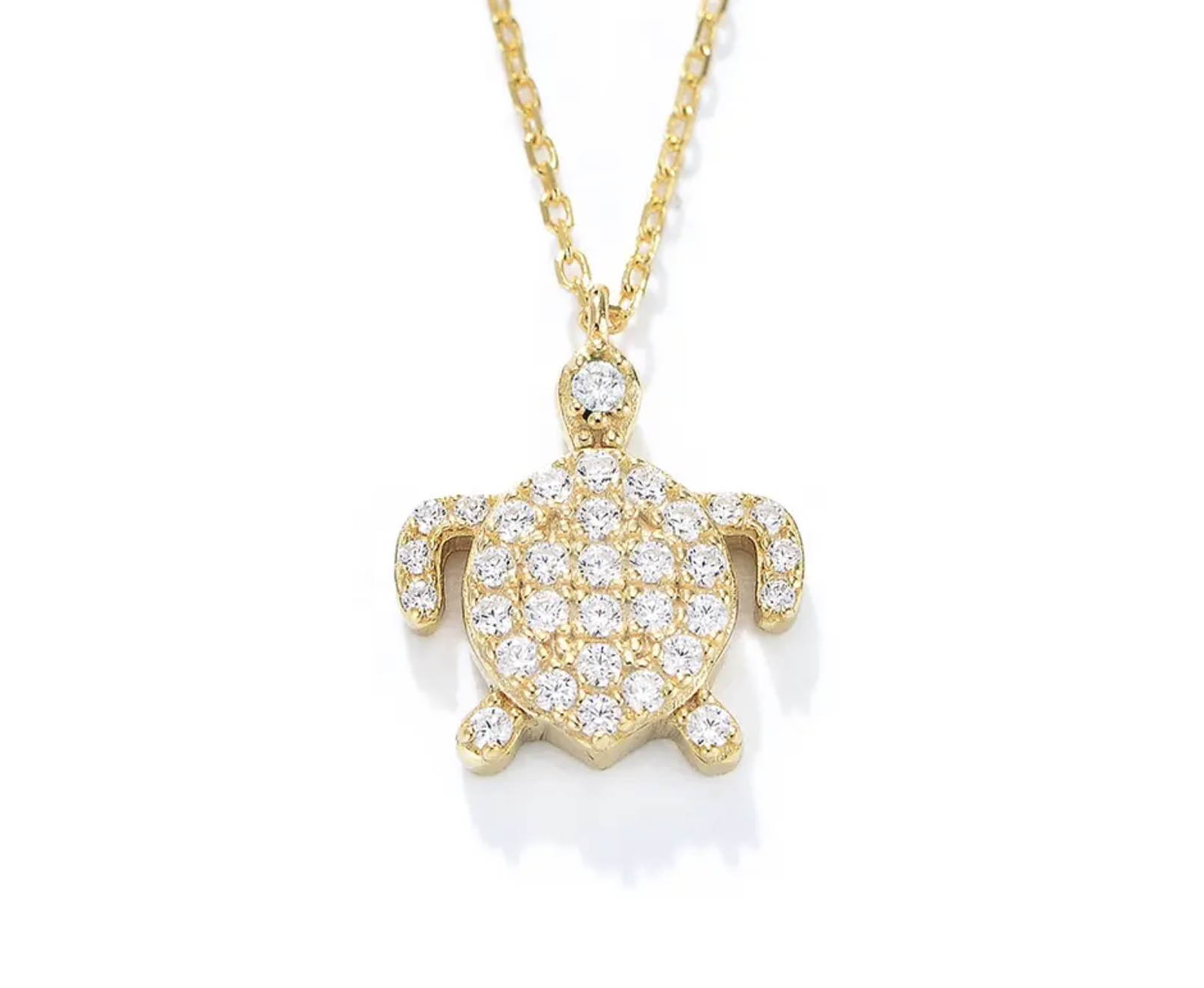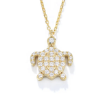 This necklace is made of 925 sterling silver with gold or rhodium plating. Rest assured this necklace is nickel free. The cute little pendant is beautifully encrusted with white triple AAA grade cubic zirconia. This chain features a lobster clasp and adjustable setting to wear 16" to 18" in length. The pendant is 12.8mm tall.
