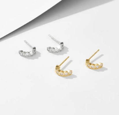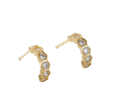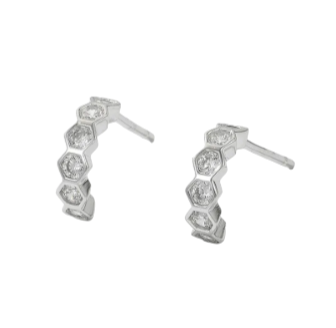 Add a touch of modern elegance to your look with these stunning hexagon CZ honeycomb half hoop earrings. Expertly crafted for a unique and stylish appearance, these earrings are perfect for any occasion.