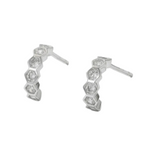 Stylish Hexagon CZ Honeycomb Half Hoop 925 Sterling Silver Earrings