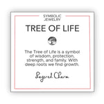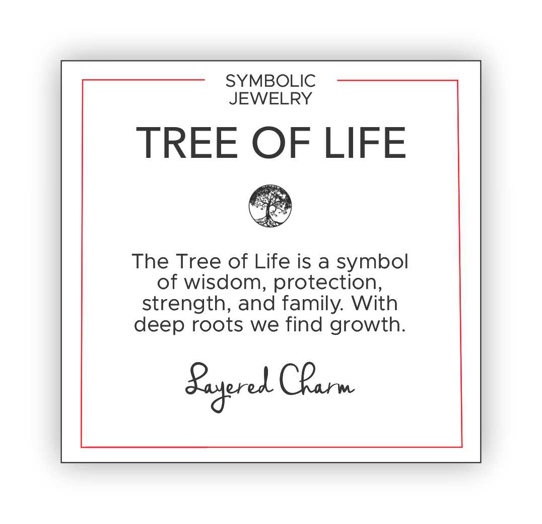 Sterling silver with rhodium,  tree of life pendant with cubic zirconia, 15x14mm frame. Paired on a sterling silver chain with a spring clasp. The Tree of Life is a symbol of wisdom, protection, strength, and family. With deep roots we find growth. Each tree of life jewelry piece comes with a meaningful cardstock included with jewelry packaging.