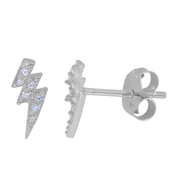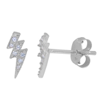 Sterling silver with rhodium, 4x9mm thunder bolt stud earrings with cubic zirconia