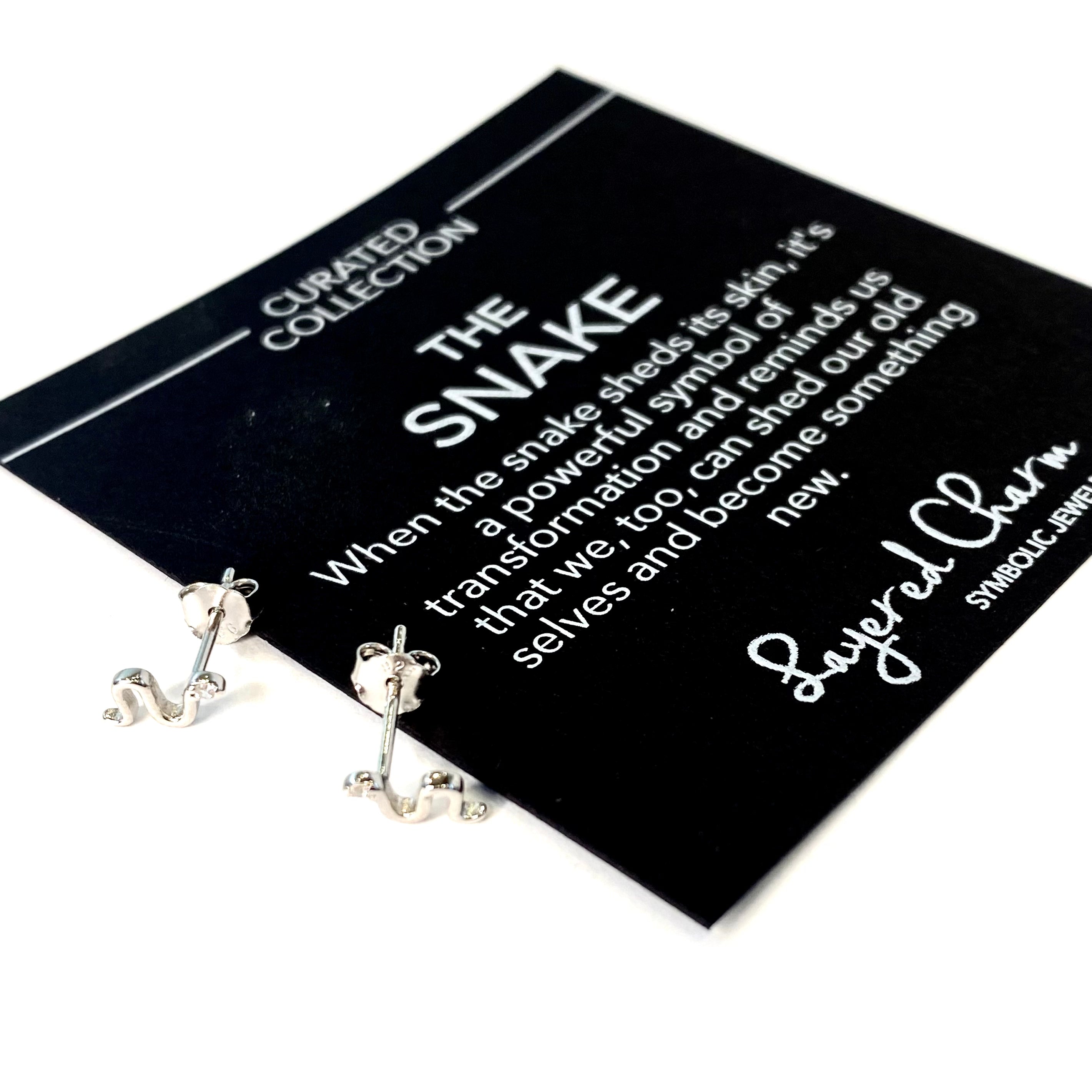 Snakes are beguiling creatures saturated with symbolic meaning. Because they shed their skin & move so quickly, they've come to signify rebirth, transformation, duality, and thought of as protectors of the shadow realms & portals between worlds. This snake is very realistic in its textured nature and coiled look will surely make a statement. These pair of sterling silver earrings are rhodium plated.