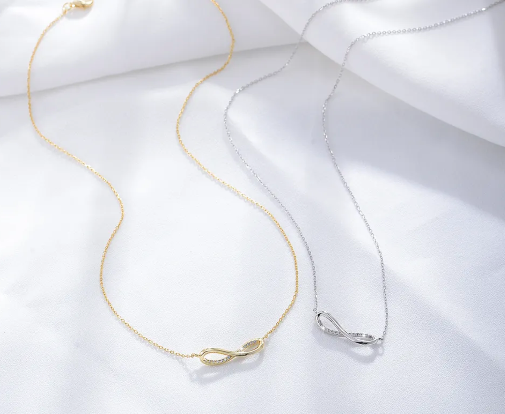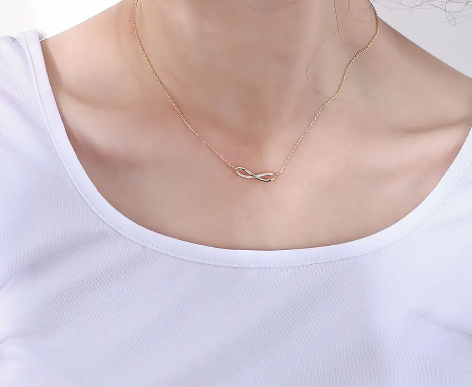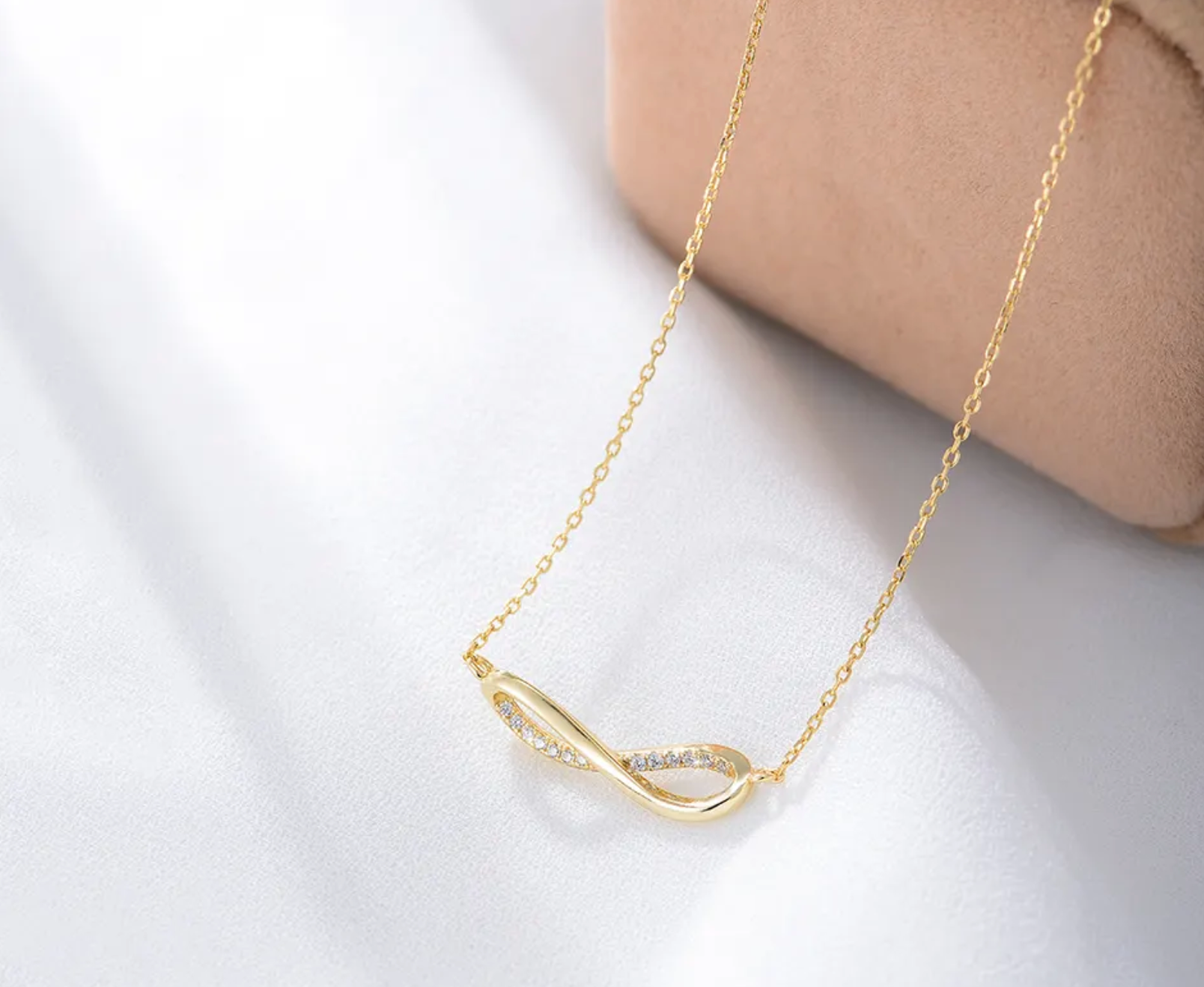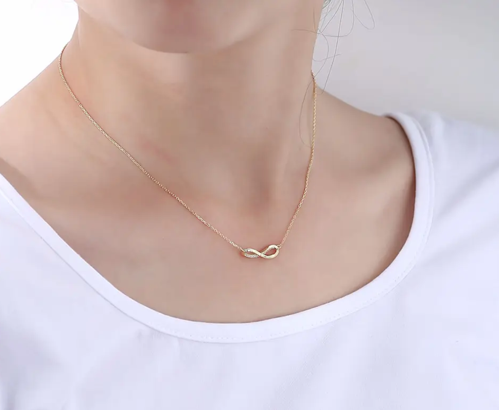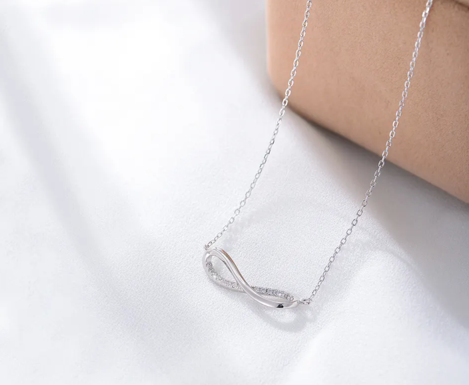 This infinity necklace symbolizes eternity and everlasting love, the infinity serves as a reminder that love knows no limitations, only infinite possibilities.