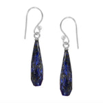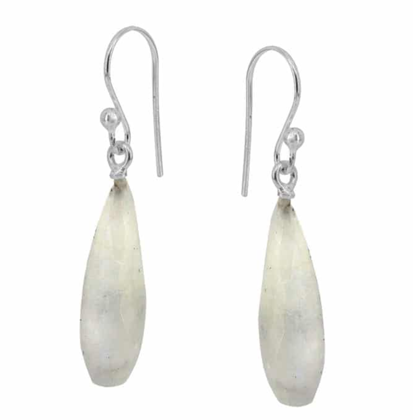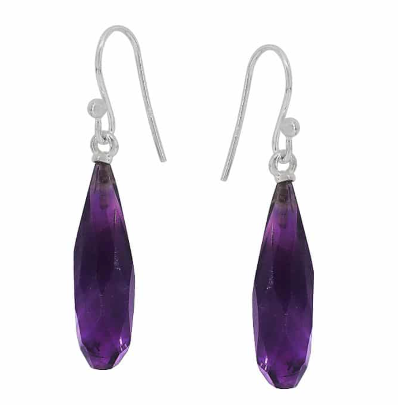 Make a statement with these dangle semi-precious stone teardrop faceted stone earrings on shepherd hooks. Colour and size may vary as they are hand formed. The stone measures 10mm by 25mm paired on sterling silver shepherd hooks.