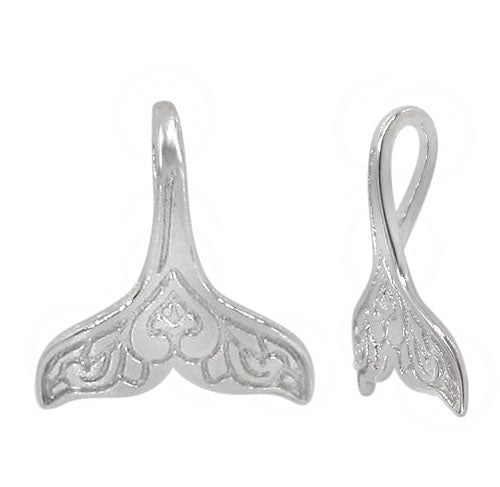 Sterling silver with rhodium plated whale tail charm, 10x11mm(outer frame)Paired on a cable chain 18".