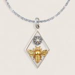 With three finishes - warm bronze bee, dark oxidized interior, and silver diamond frame - this sterling silver diamond charm with the bronze bee is for anyone who loves the look of mixed metals. Mounting our best-selling bronze bee charm.